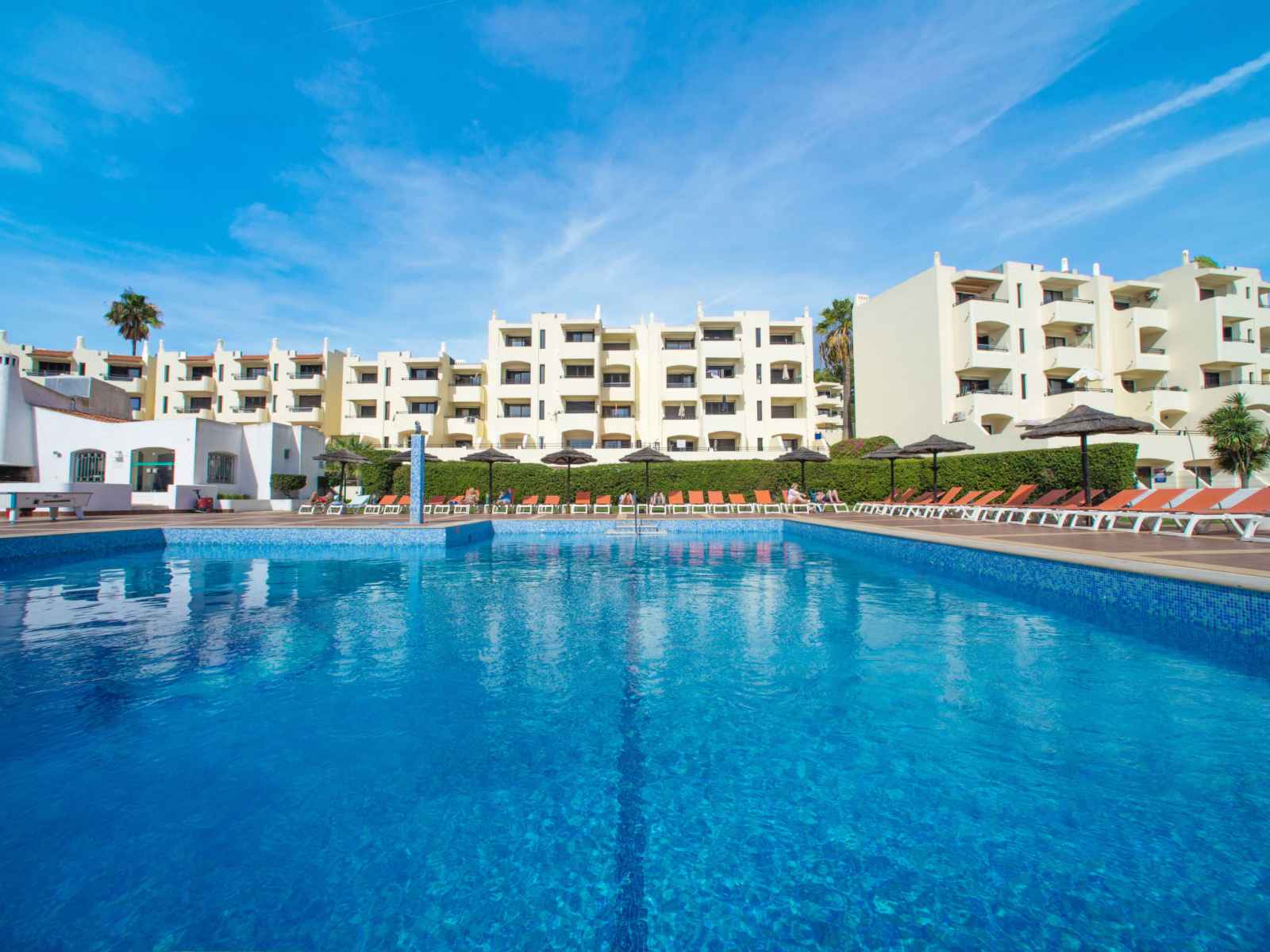 Belle petite résidence accueillante "la perle d'albufeira", rénovée en 2023. 37 appartements dans la résidence. dans l'arrondissement albufeira, situation animée quartier résidentiel, à 1 km de la mer. en commun: piscine rectangulaire (4 x 9 m, profondeur 90 - 190 cm, disponibilité saisonnière: 01.jan. - 31.dec.). bassin pour les enfants,