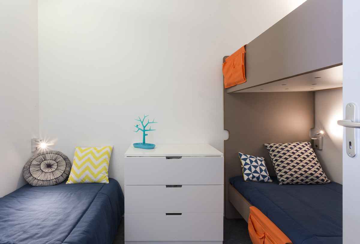 il se compose d'une cabine avec 1 lit simple et 2 lits superposés (le couchage en hauteur ne convient pas aux enfants de moins de 6 ans)