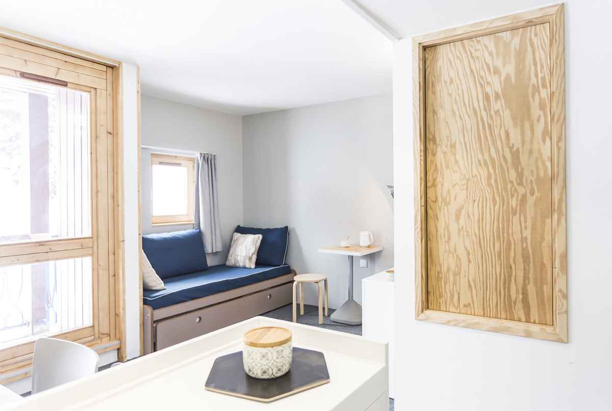 Studio cabine rénové pour 5 personnes, situé au calme, au 7ème étage de la résidence thuria, d'une superficie de 30m², balcon exposé est.