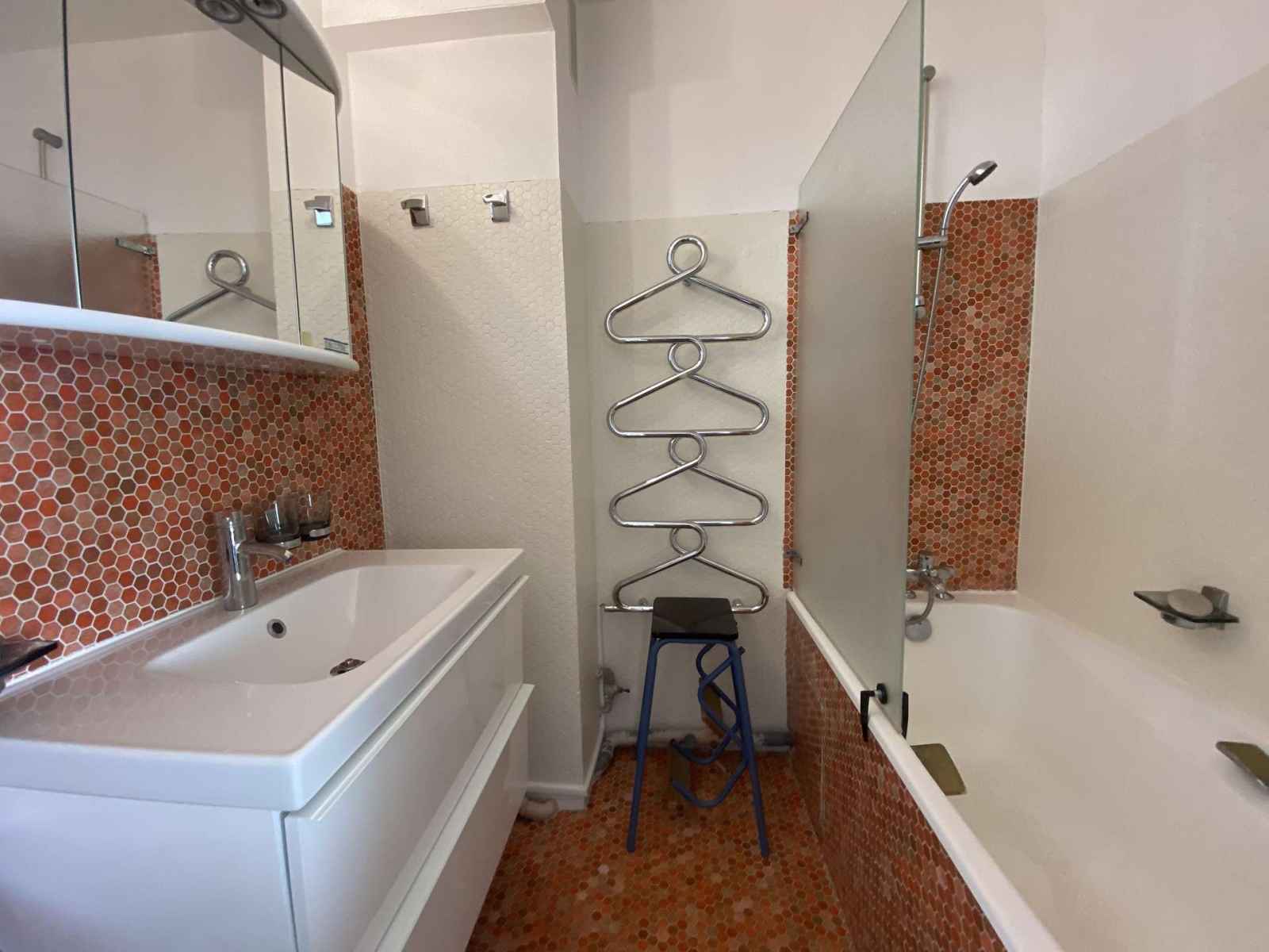- Salle de bains (1 vasque, une baignoire, un sèche-serviettes)