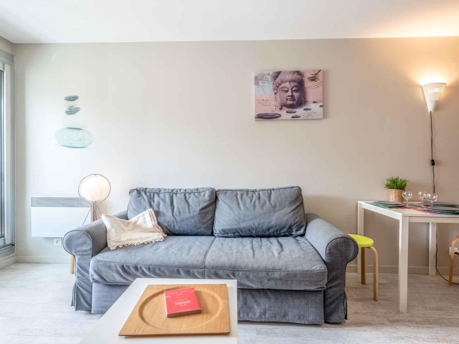 L'emplacement est idéal pour des belles vacances à Biarritz. Le bâtiment fait un peu vieillot mais sinon l'appartement est très bien. Le canapé lit est pas très pratique mais il fait l'affaire. Mais sinon globalement c'est très bien