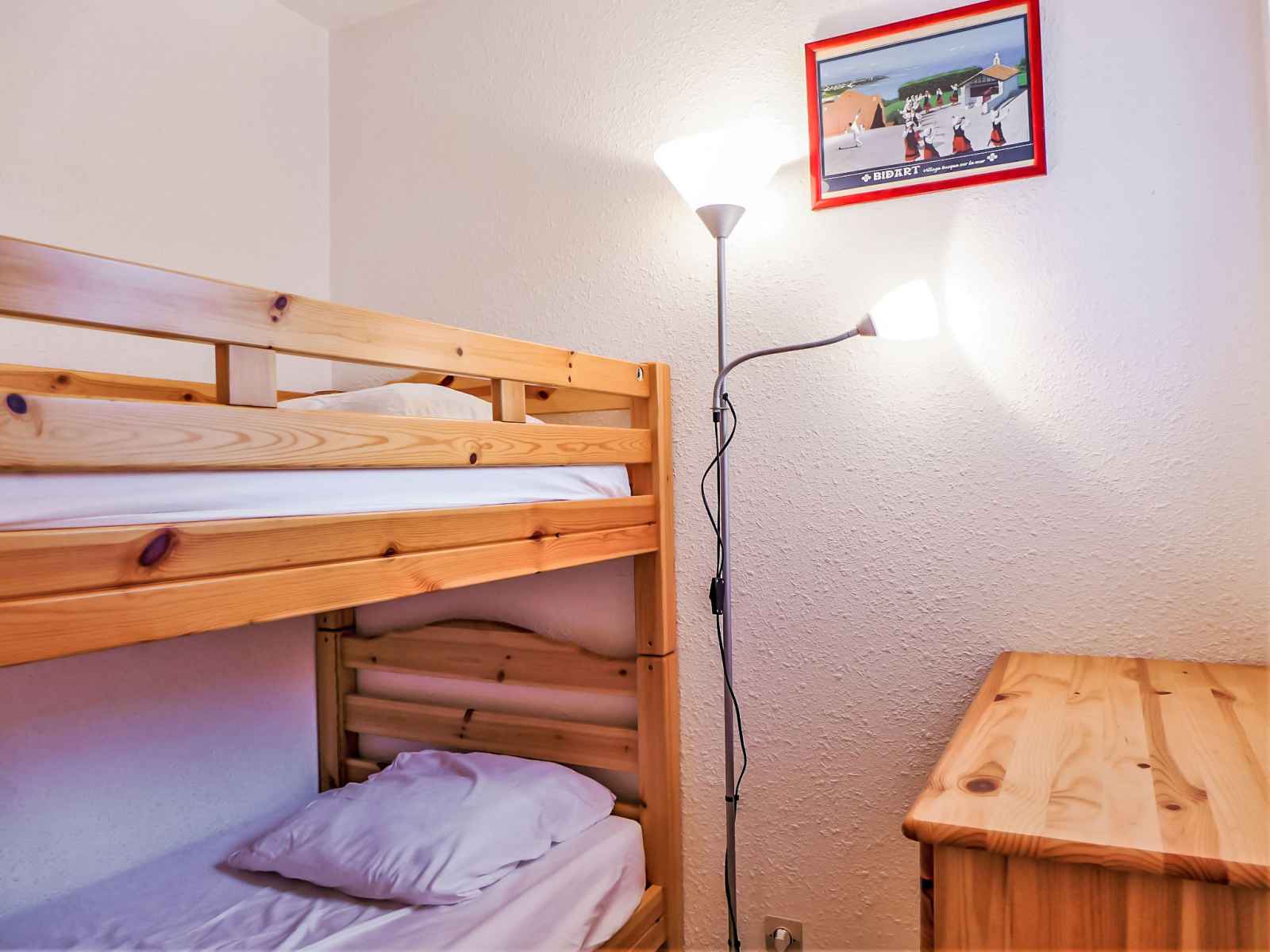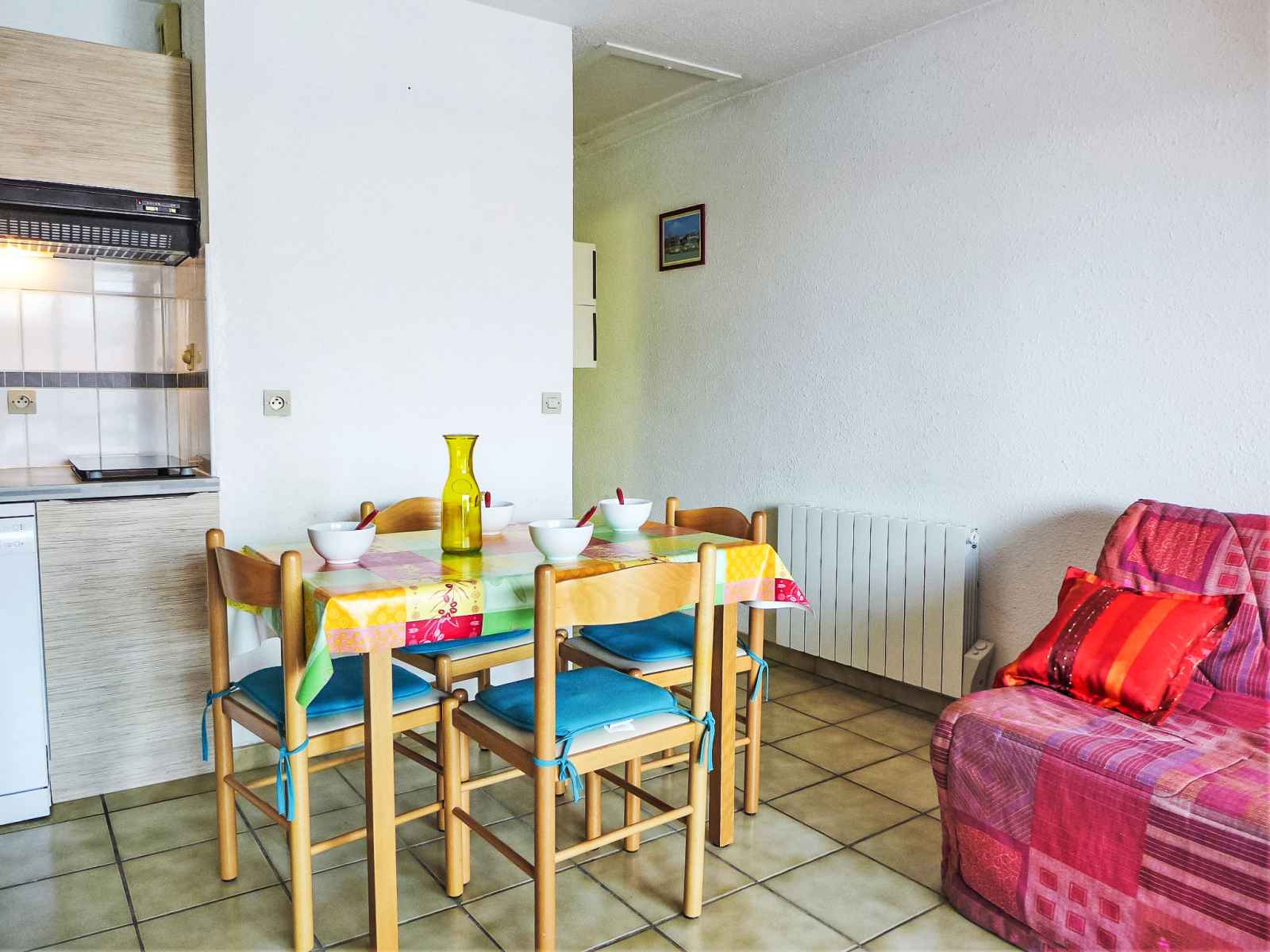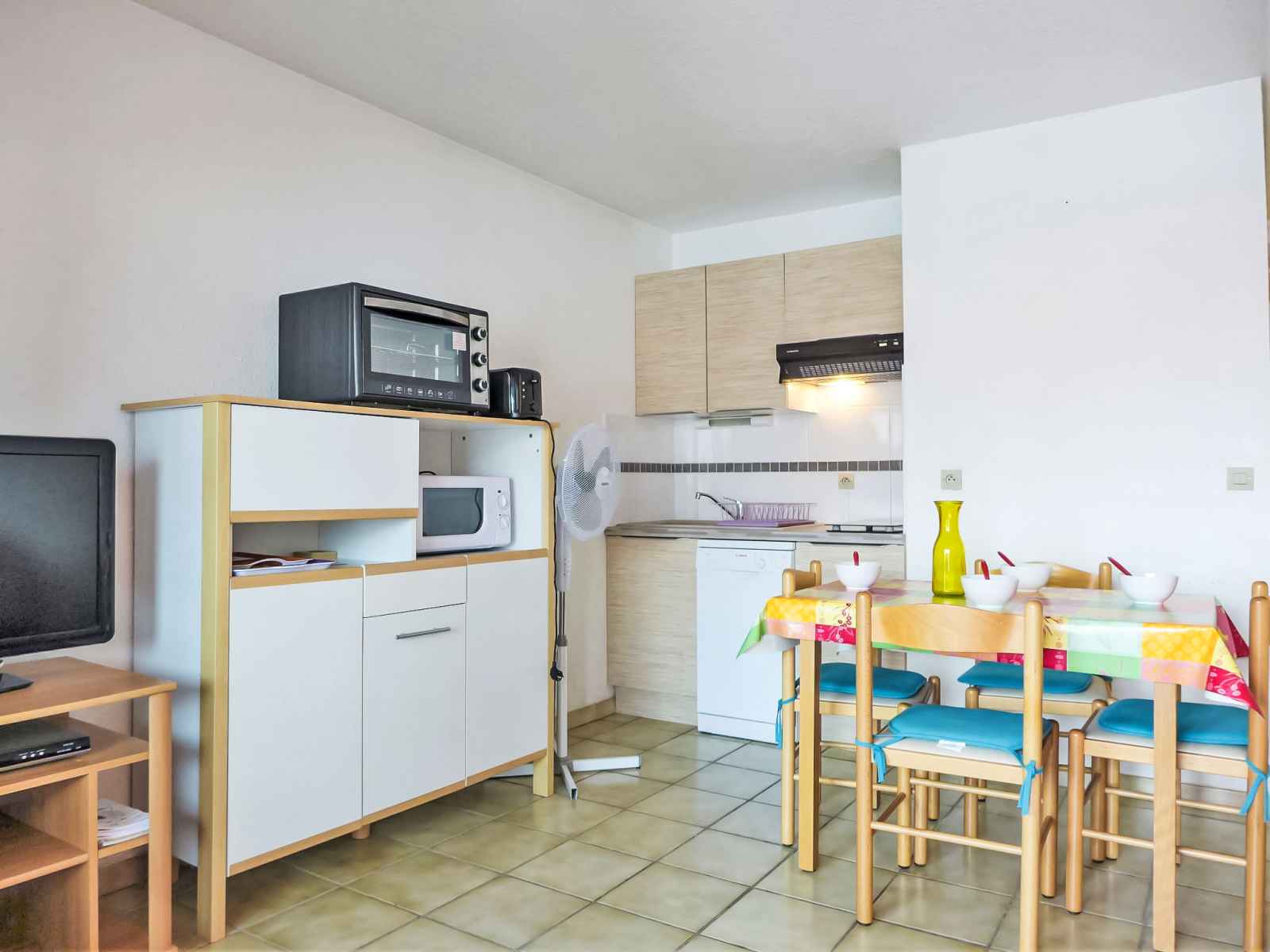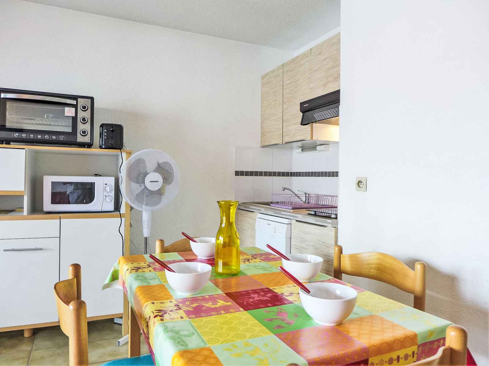 Studio 27 m2 au 1er étage. aménagement simple et confortable: séjour avec 1 divan-lit double (1 x 140 cm, longueur 190 cm), tv (écran plat). sortie sur la terrasse. cabine avec 1 x 2 lits superposés (90 cm, longueur 190 cm). coin cuisine (four, lave-vaisselle, 2 plaques vitrocéramiques, micro-ondes, congélateur, cafetière électrique).