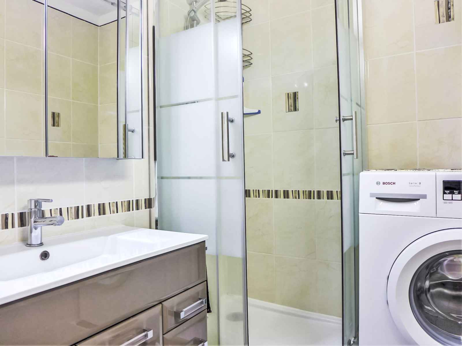 Douche, WC séparé. Chauffage électrique. Meubles de terrasse. A disposition: lave-linge, fer à repasser, sèche-cheveux. Internet (Connexion WIFI, gratuit). Place de parking No 109. Veuillez noter: maximum 1 animal/ chien autorisé. Détecteur de fumée. Au lieu d'une chambre fermée, des espaces de couchage sont situés dans une zone ouverte (galerie, alcôve...). 641250011992F