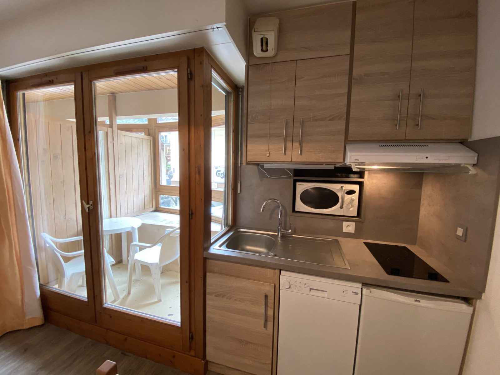 Studio coin montagne de 25 m² exposé sud pour 4 personnes au 1er étage de la résidence avec ascenseur. balcon loggia avec vue sur la rue commerçante de brides les bains, à proximité des restaurants et bar.