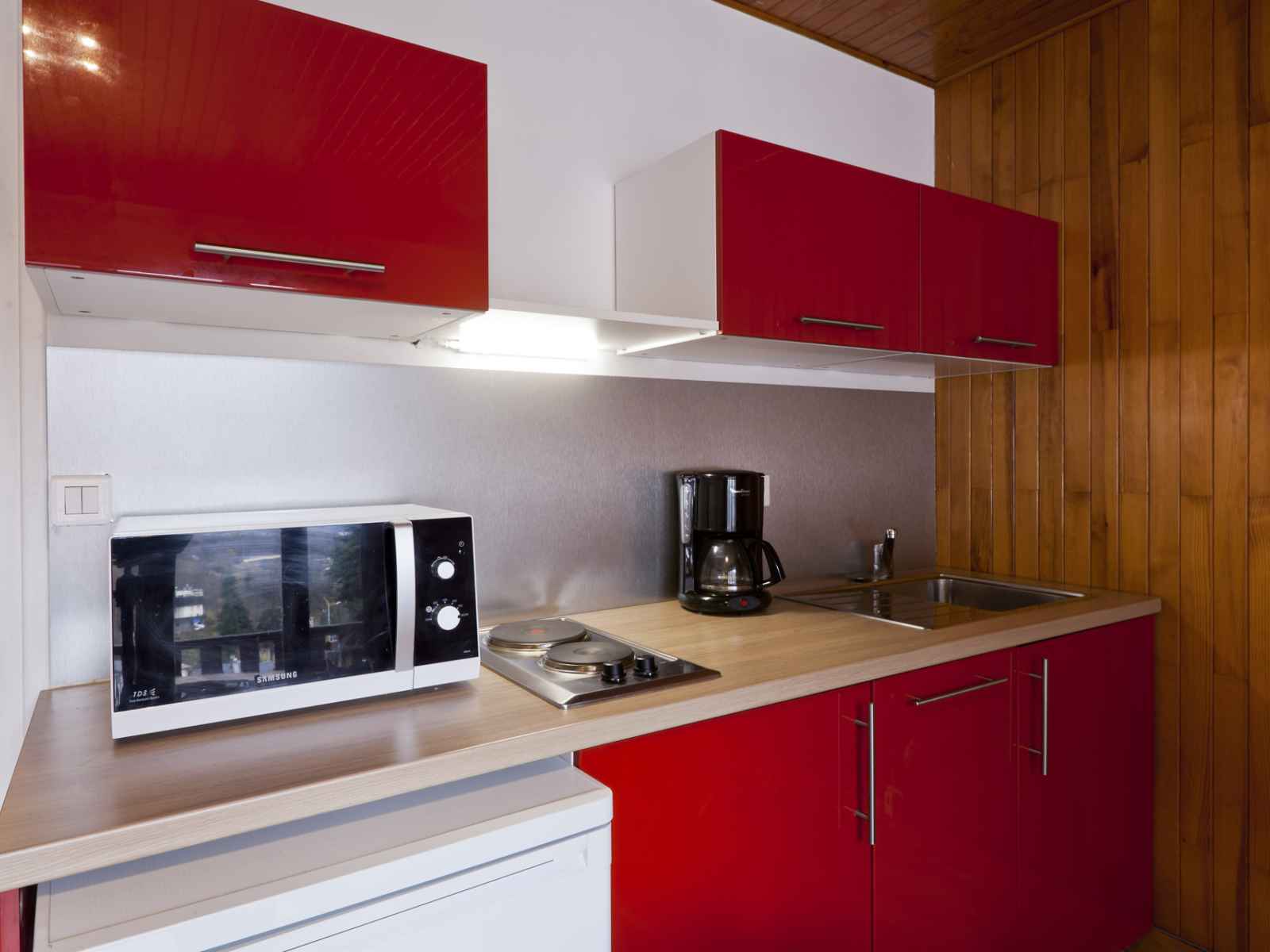 cuisine ouverte sur la pièce à vivre : plaques électriques,