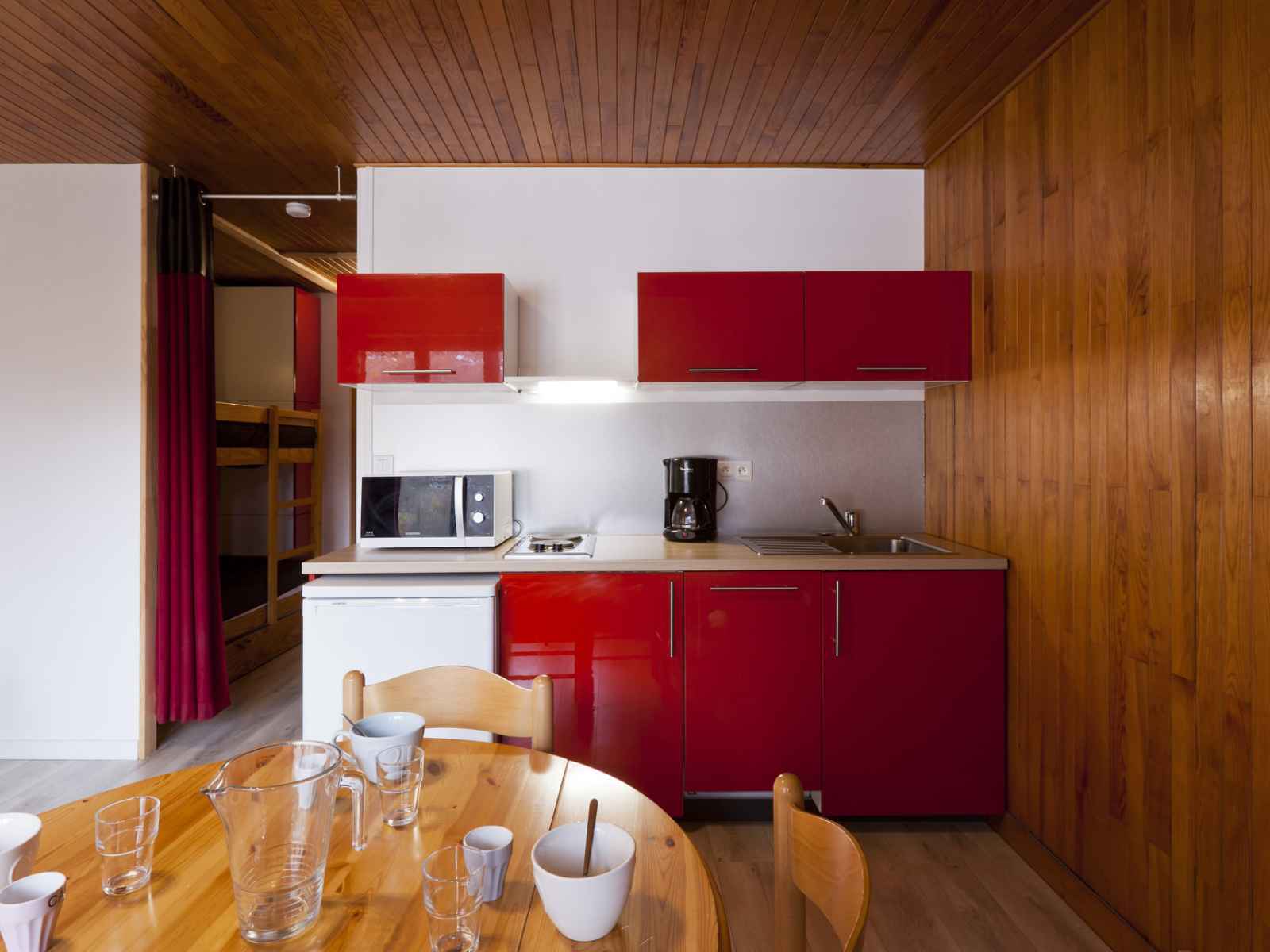 micro-ondes, lave-vaisselle, réfrigérateur avec freezer, cafetière, bouilloire et grille-pain. COUCHAGES: Coin montagne : un ensemble de lits superposés Salon : Canapé avec lit rabattable (2 personnes), 160 cm. Salle de bains avec baignoire, lave-linge et WC. Connexion wifi inclus Parking extérieur commun à la résidence, places non nominatives. CONDITIONS DE LOCATION : Linge de lit inclus du 15/12 au 15/04 pour les courts séjours d'hiver. Le linge de lit n'est pas inclus pour les séjours de cures toute l'année. Linge de toilette et ménage de fin de séjour non inclus et sur demande. Caution demandée à l'arrivée. Supplément de 30€ par animal par séjour (maximum 2 animaux). INTERDICTION DE FUMER DANS LE LOGEMENT