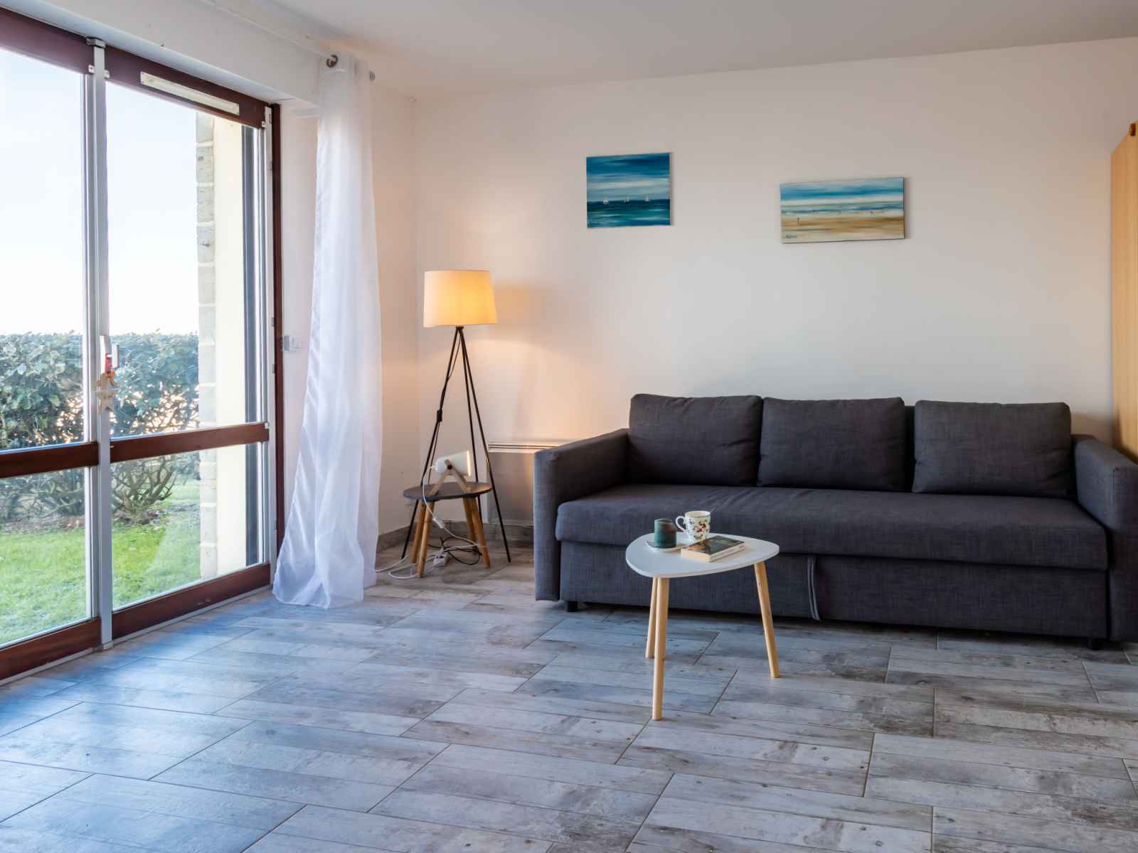 Studio 37 m2, au rez-de-chaussée, situation nord-ouest. séjour/salle à manger avec 2 divans-lits doubles (140 cm, longueur 190 cm), tv (écran plat), dvd. sortie sur le jardin. cuisine (four, 3 plaques à induction, grille-pain, bouilloire électrique, micro-ondes, cafetière électrique). bain/wc. chauffage électrique. jardin 15 m2. meubles