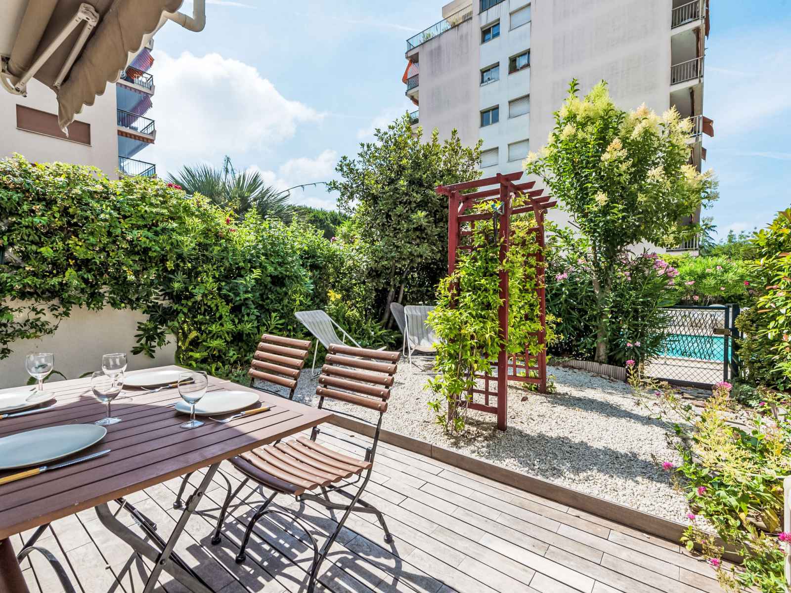 à air chaud. Terrasse 20 m2, jardinet 20 m2. Meubles de terrasse. Vue sur la piscine. A disposition: lave-linge. Internet (Connexion WIFI, gratuit). Veuillez noter: détecteur de fumée. Au lieu d'une chambre fermée, des espaces de couchage sont situés dans une zone ouverte (galerie, alcôve...). 06029009279WF