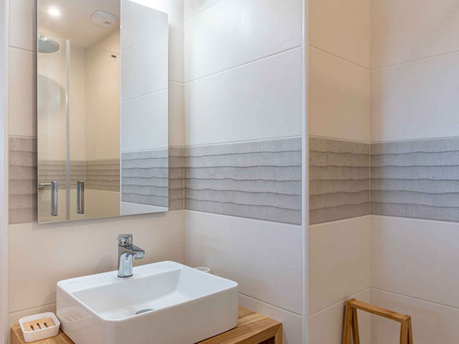 électrique, Capsules pour machine à café (Nespresso) (NON INCLUSES)). Douche, WC séparé. Chauffage au gaz. Balcon 6 m2. Mobilier de balcon. Belle vue éloignée sur la mer. A disposition: fer à repasser, sèche-cheveux. Internet (Connexion WIFI, gratuit). Place de parking (cloturée, 1 Voiture). Veuillez noter: détecteur de fumée. Au lieu d'une chambre fermée, des espaces de couchage sont situés dans une zone ouverte (galerie, alcôve...).