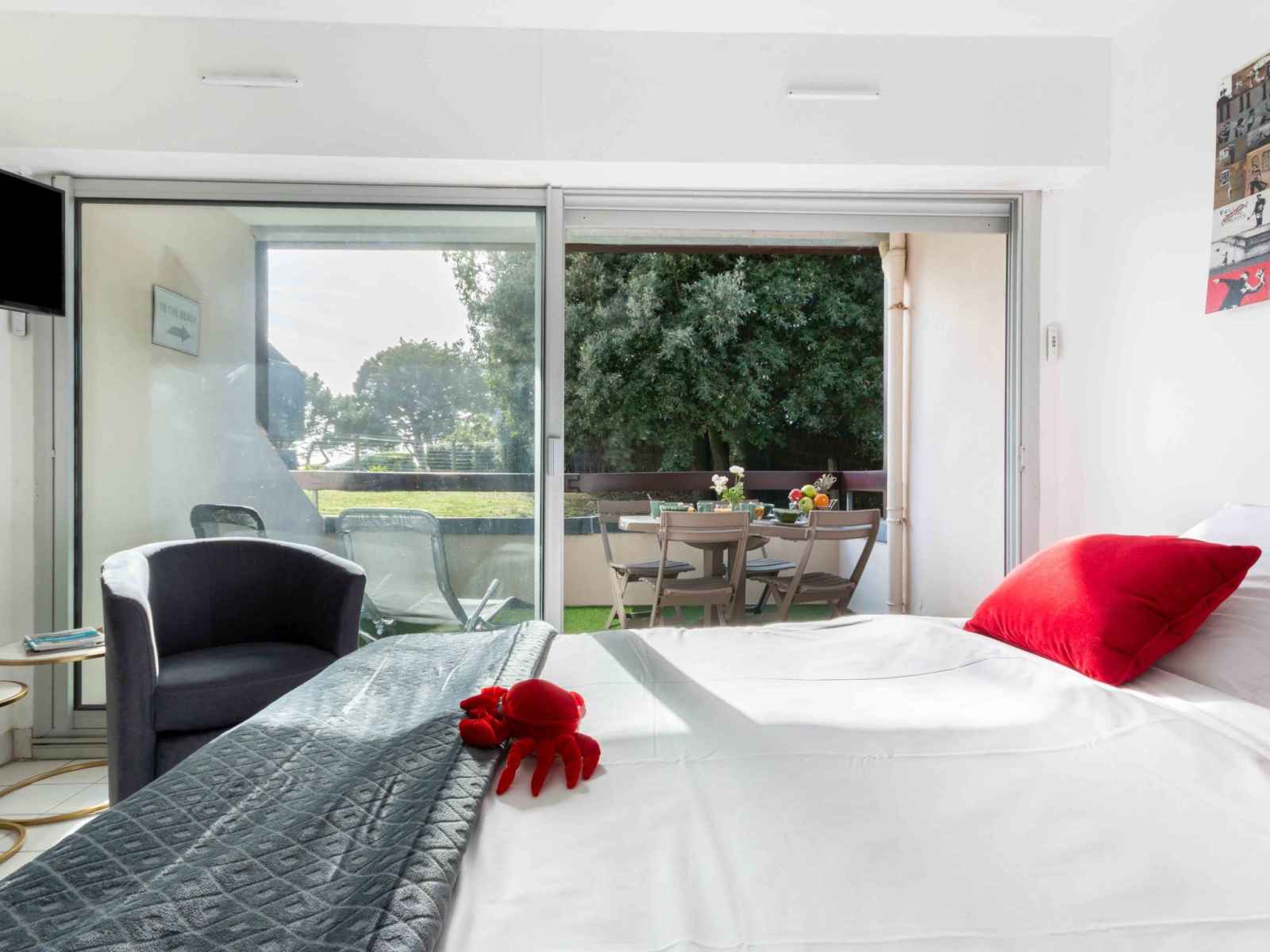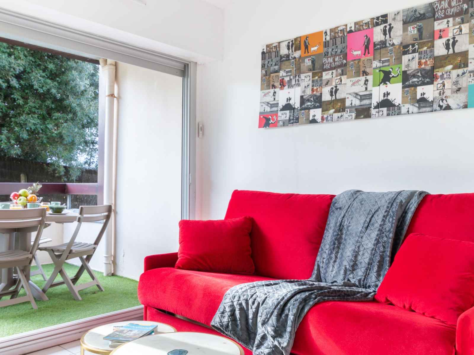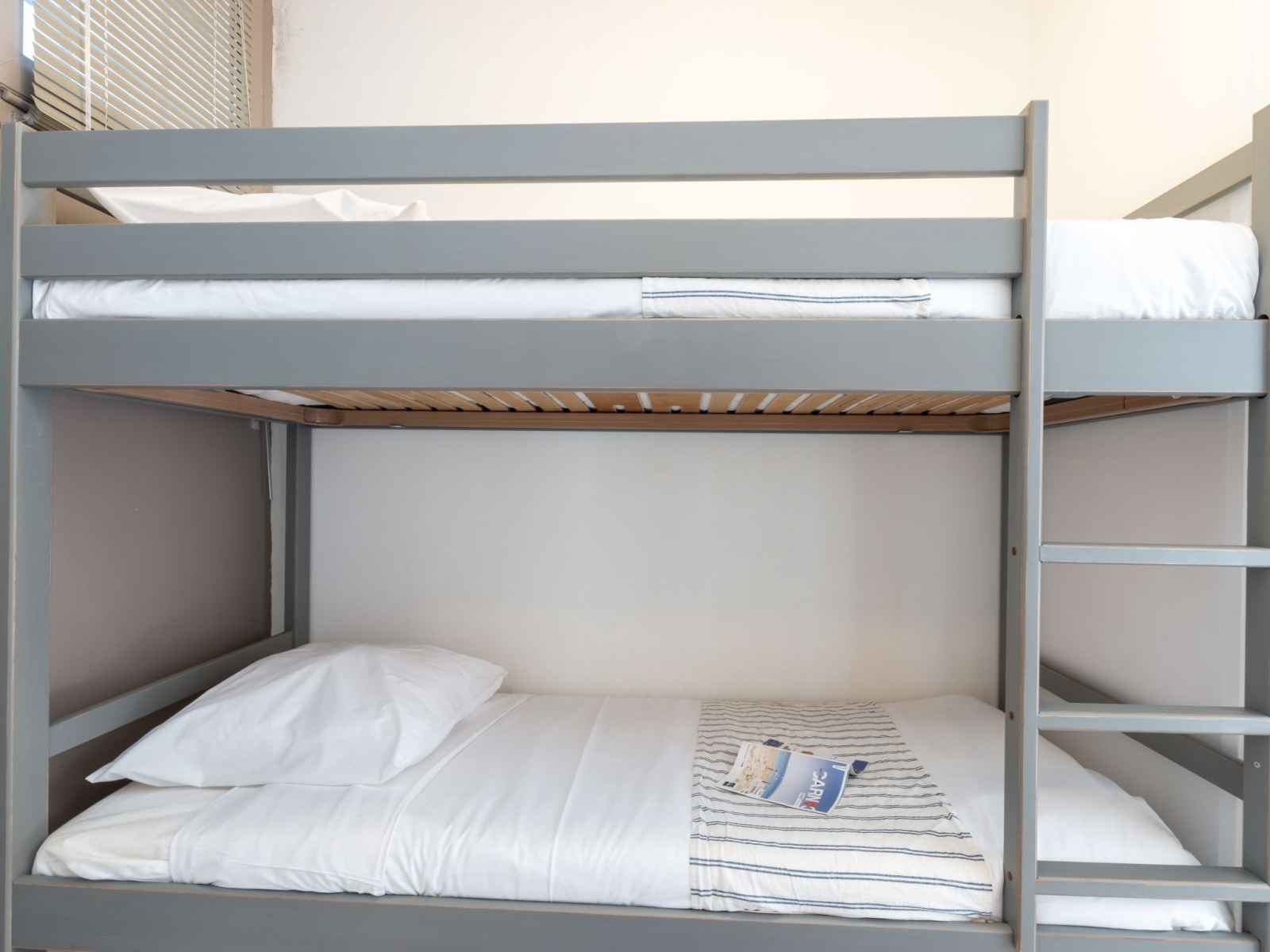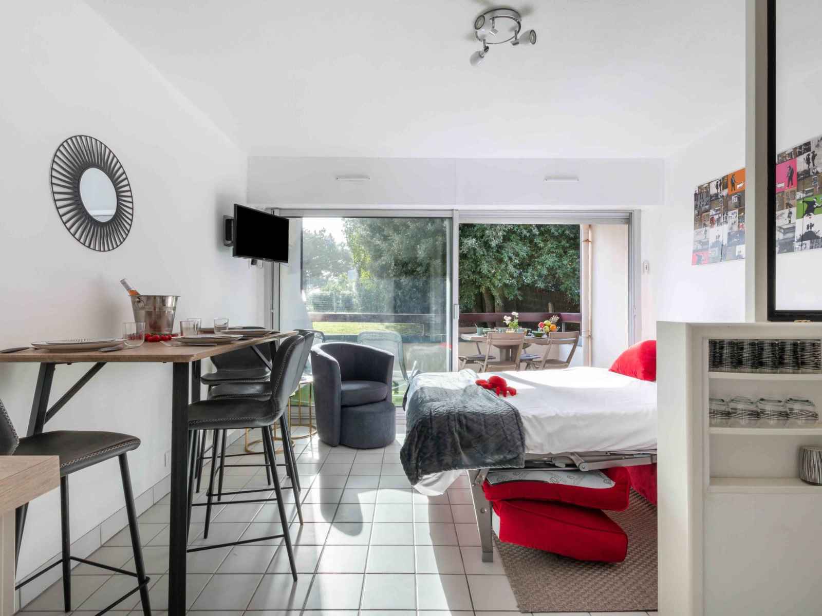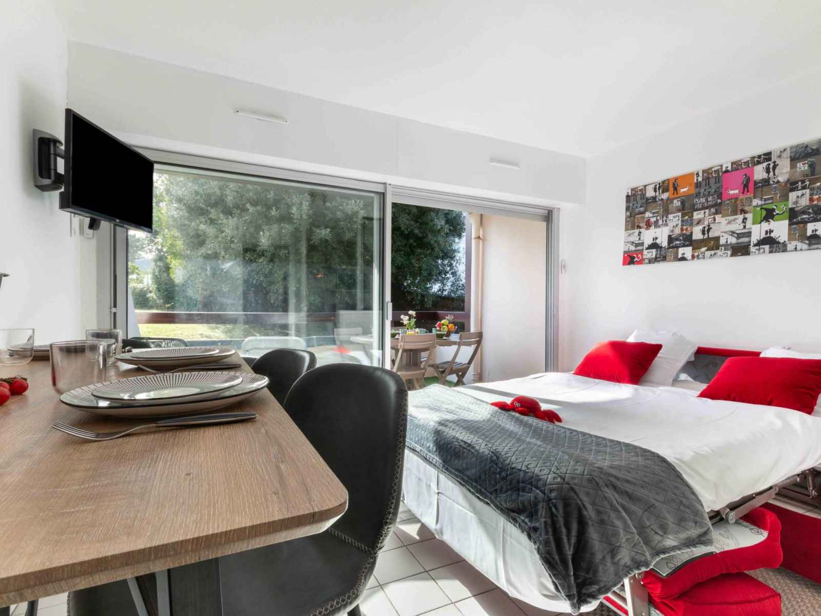 Studio 25 m2, rez-de-chaussée surélevé. logement idéal pour 2 adultes + 2 enfants. aménagement confortable: séjour/salle à manger avec 1 divan-lit double (1 x 140 cm, longueur 190 cm), tv (écran plat). sortie sur la terrasse. cabine avec 1 x 2 lits superposés (80 cm, longueur 190 cm). cuisine (lave-vaisselle, 2 plaques vitrocéramiques,