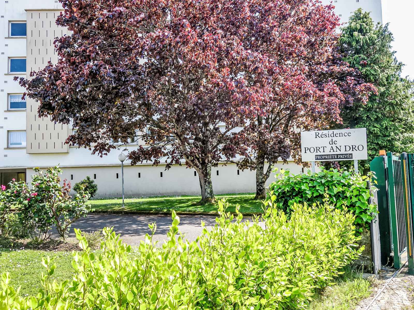 Résidence "port an dro", de 4 étages, environnée par les arbres. dans la localité, à 100 m du centre, excellente situation: centrale mais tranquille, à 100 m de la mer, à 100 m de la plage. en commun: parc (clôturé). infrastructures de la maison: réduit pour bicyclettes. place de parking. magasins 100 m, magasin d'alimentation 200 m,