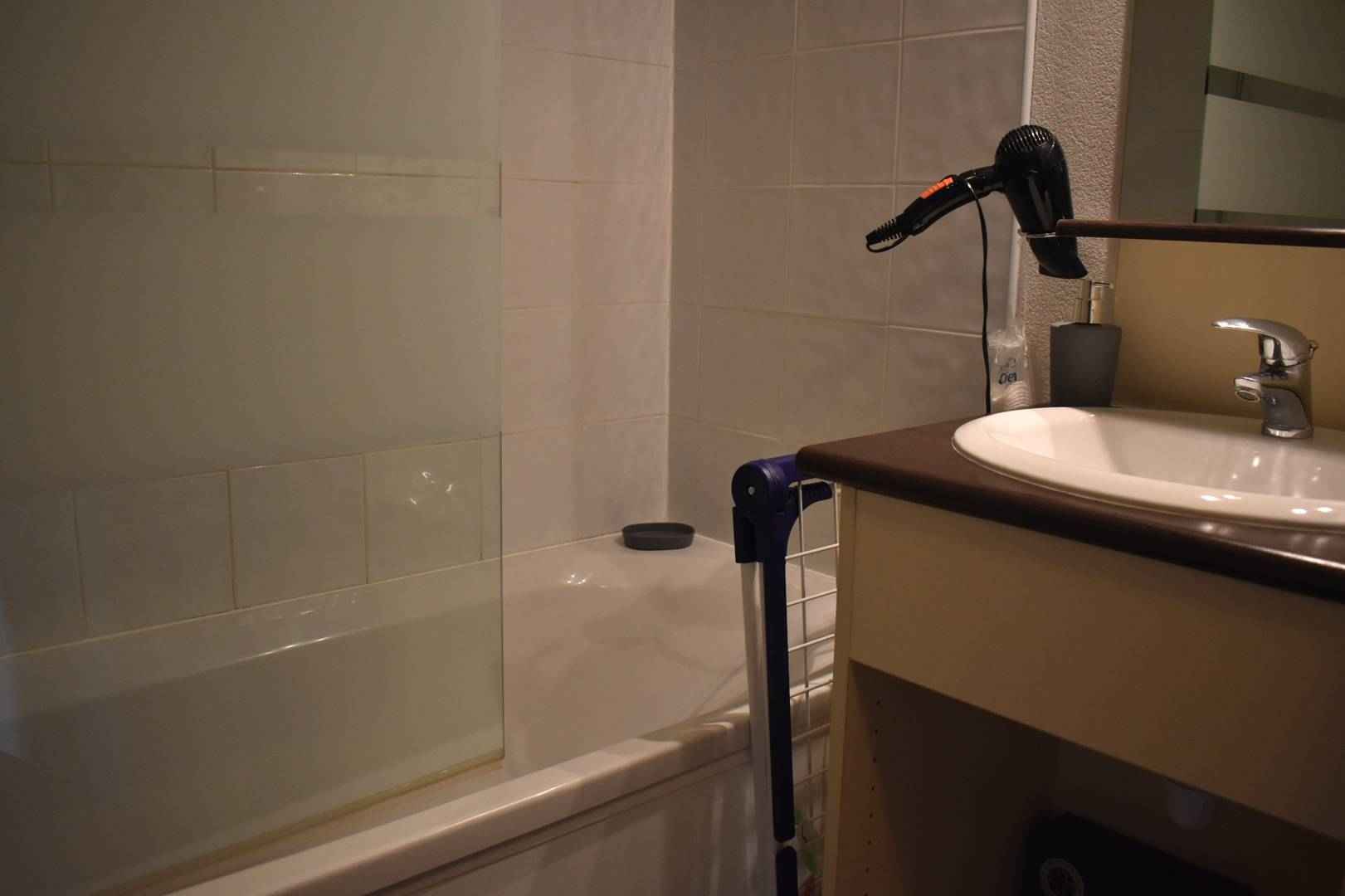 - Salle de bains (Baignoire, wc, lavabo - seche cheveux)