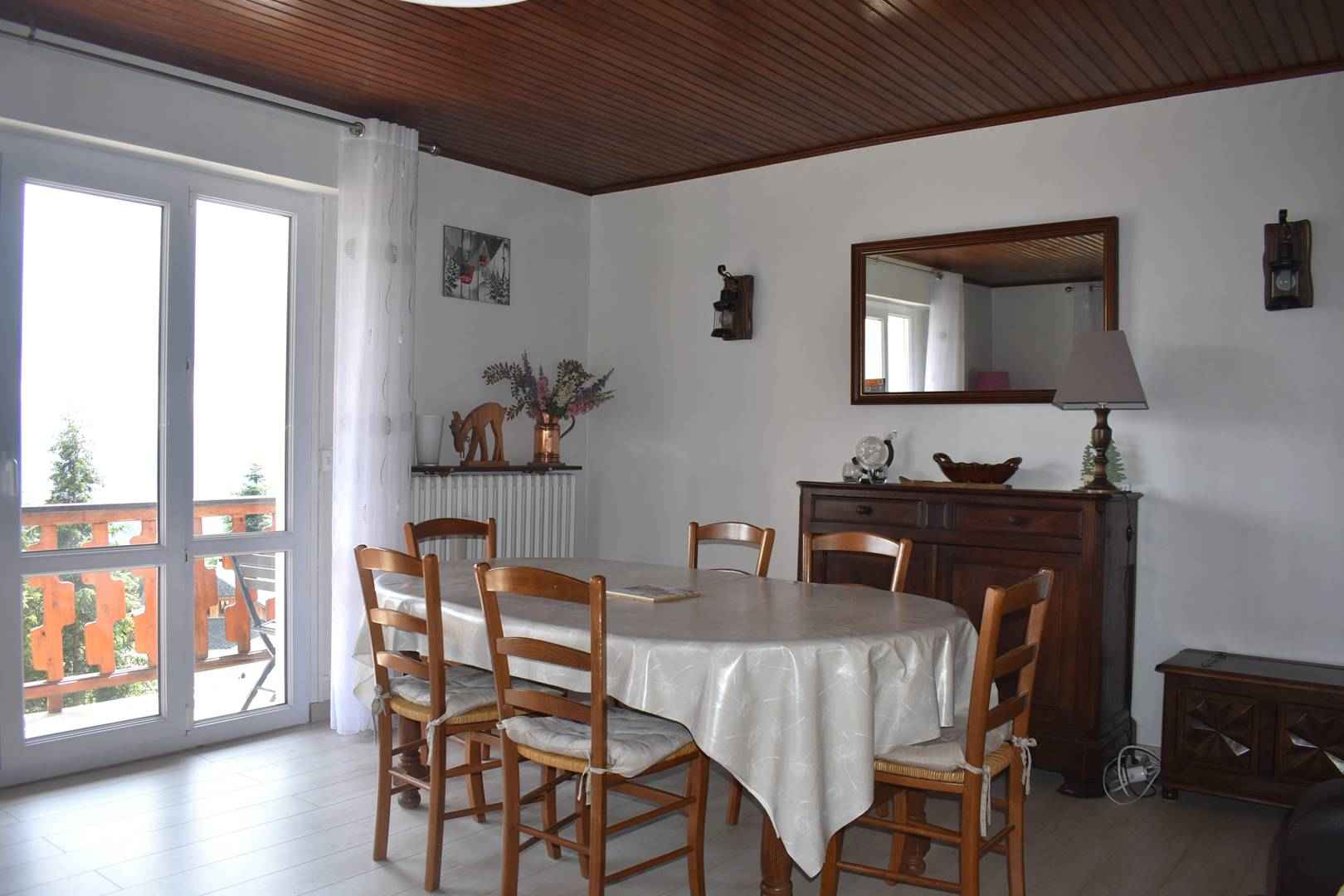 Balcon plein sud avec une table et chaises pour pouvoir profiter de la vue et de la tranquillité.