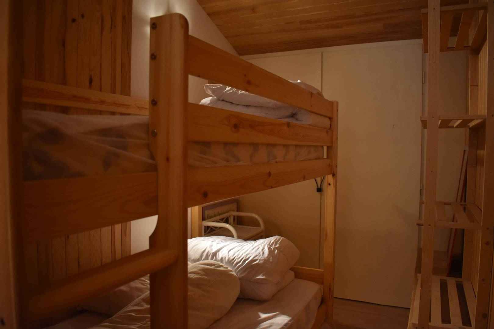 -Sur la mezzanine, un coin nuit avec 2 lits en 90x200cm et 2 lits superposés en 90x190cm