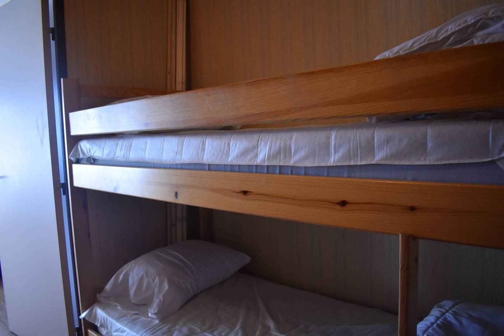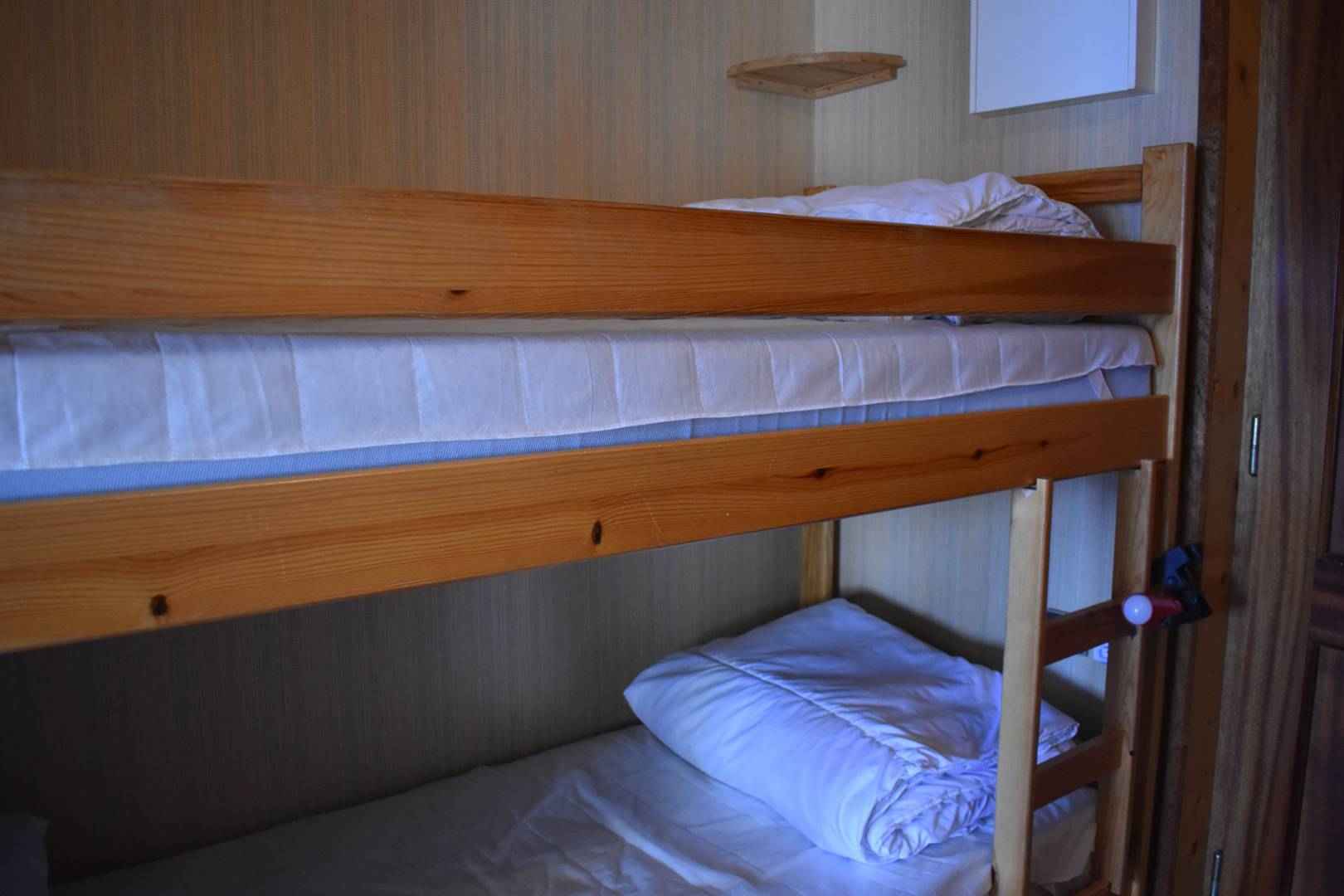 -Entrée avec coin cabine, équipé de deux lits superposés, idéal pour enfants.