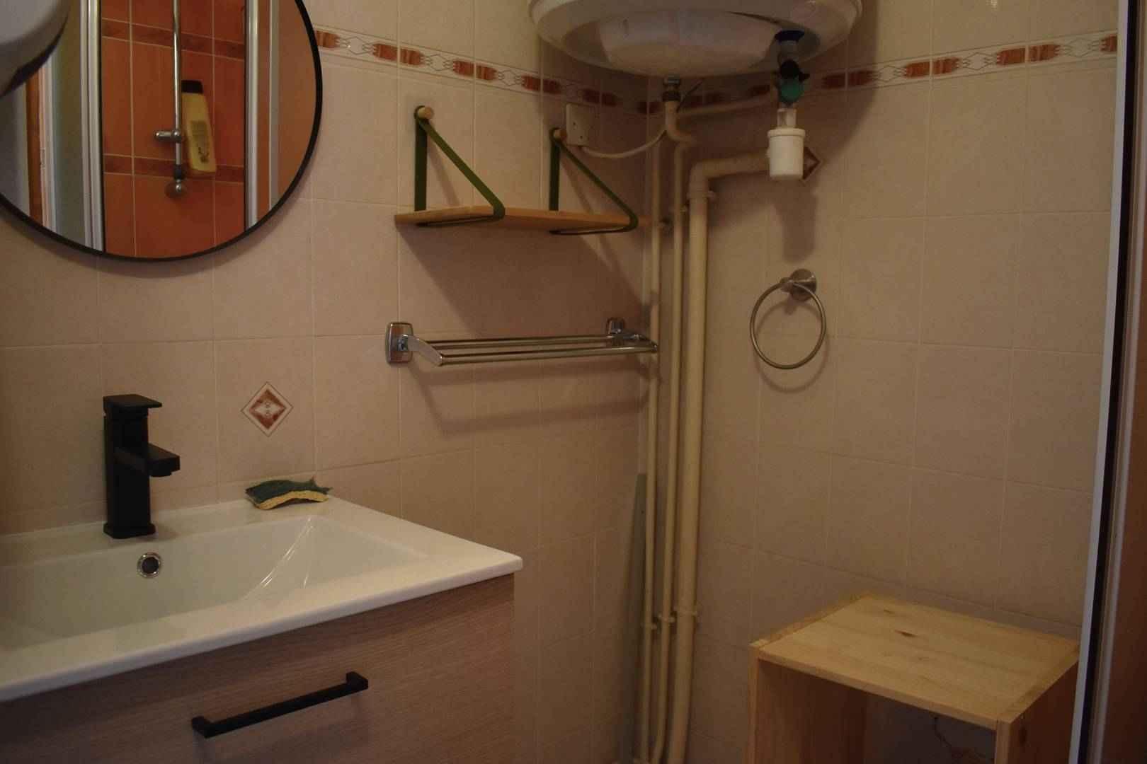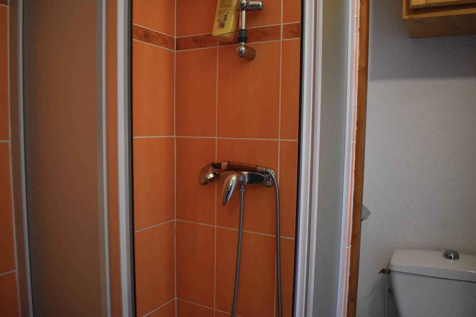 -Une salle d'eau, avec cabine de douche, WC et lavabo.