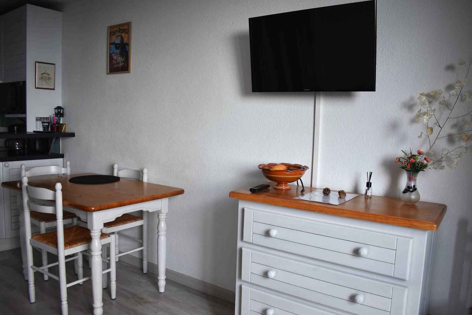 situé dans une résidence proche du centre-ville de font-romeu, ce studio cabine est idéal pour un couple avec enfants. sa belle exposition plein sud et son balcon offrant une vue imprenable sur la chaîne de montagnes catalane en font un véritable havre de