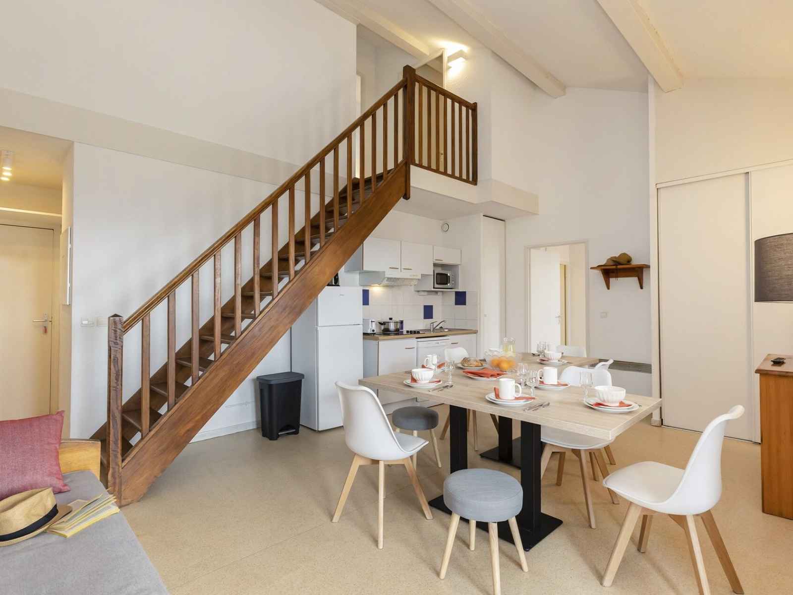 22m2, séjour avec lits gigogne (2 lits simples en 80/190)