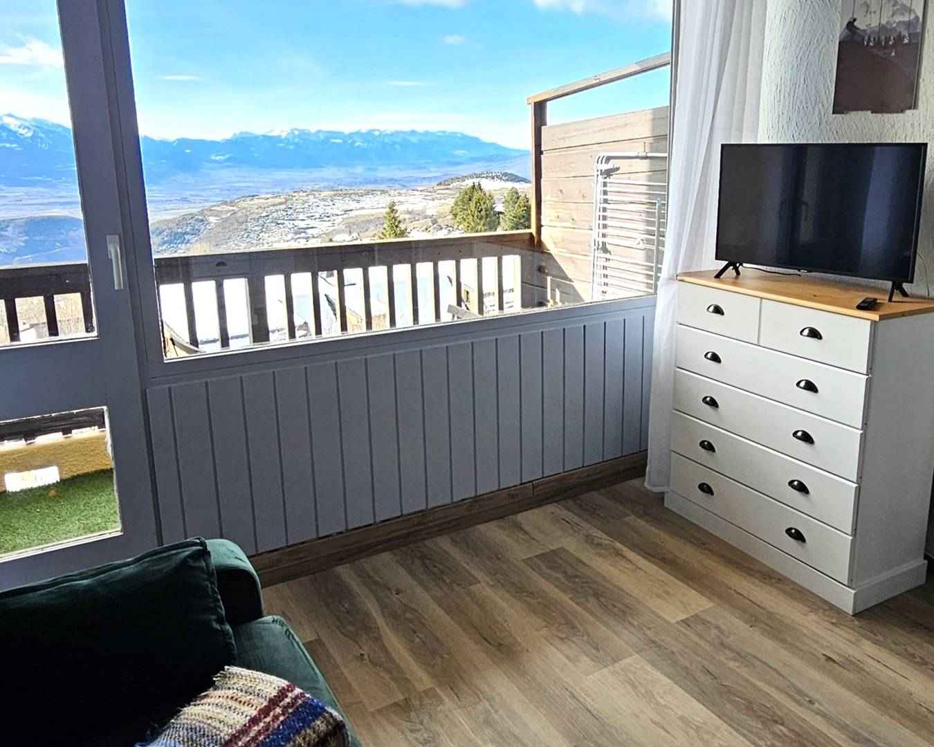 situé au 1er étage d’une résidence, ce studio offre une exposition plein sud avec une vue imprenable sur la chaîne des pyrénées et un spacieux balcon pour en profiter. proche du centre de font-romeu, il vous permet d’accéder facilement à