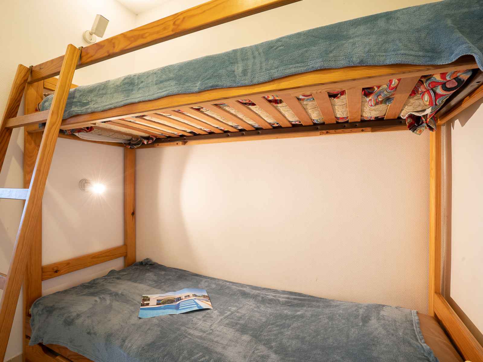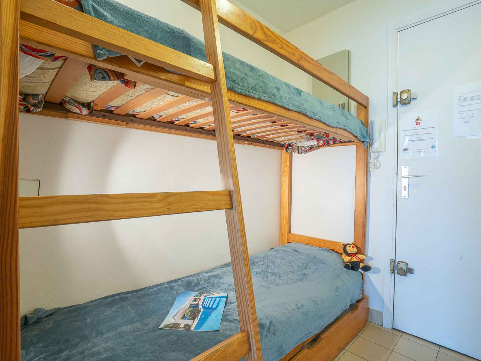Studio 28 m2 au 5ème étage. logement idéal pour 2 adultes + 2 enfants. séjour/salle à manger avec 1 divan-lit double (1 x 140 cm, longueur 190 cm), tv. alcôve avec 1 x 2 lits superposés (90 cm, longueur 190 cm), radiateur électrique. coin cuisine (2 plaques vitrocéramiques, grille-pain, bouilloire électrique, micro-ondes, cafetière