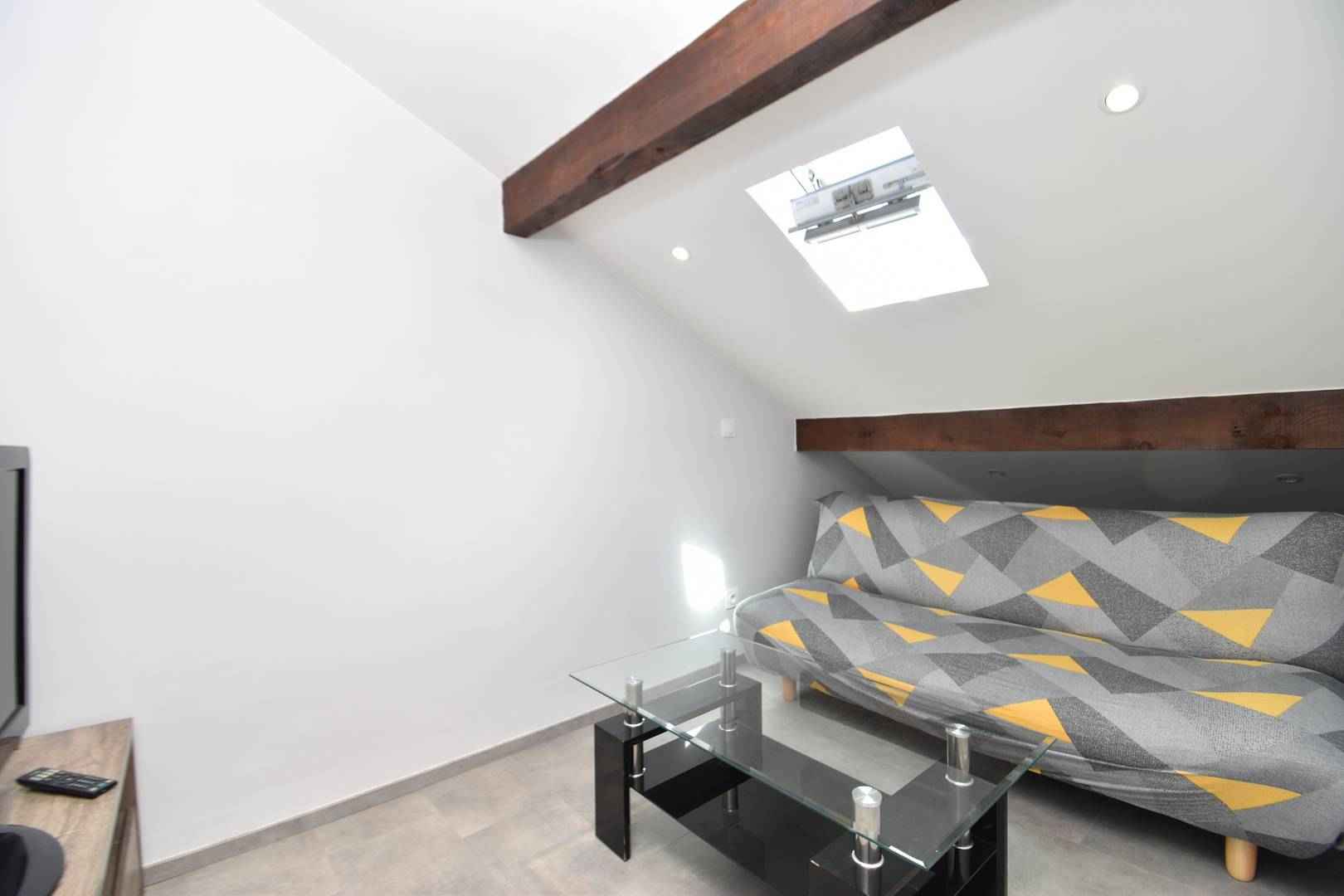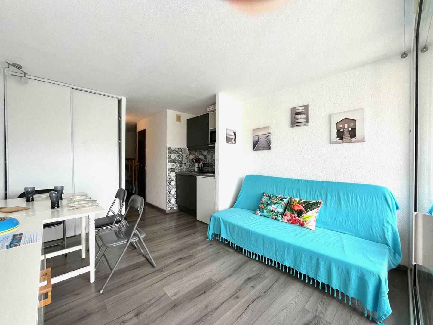 composé d une pièce à vivre avec un coin cuisine, une salle d eau avec toilettes séparés, ce studio est agréable et fonctionnel. ses 2 lits superposés en cabine et son canapé convertible permettent 4 couchages.