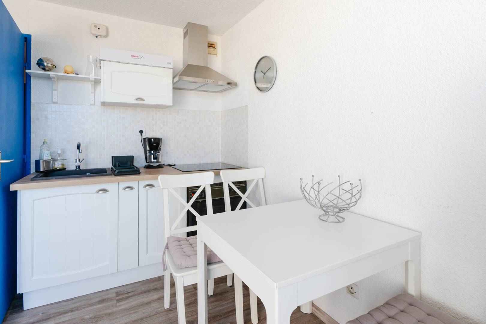séparés, d'un séjour-cuisine (four, micro-ondes, plaque de cuisson, réfrigérateur, cafetière) , une table et 4 chaises et canapé-lit (clic-clac) , TV (chaînes françaises et TNT), et d'un beau balcon de 7m². Local à vélo dans la résidence.
