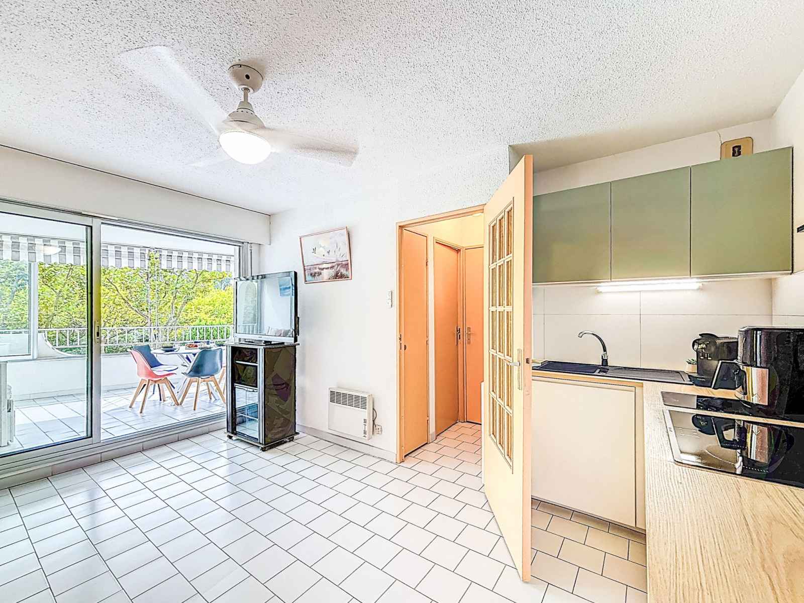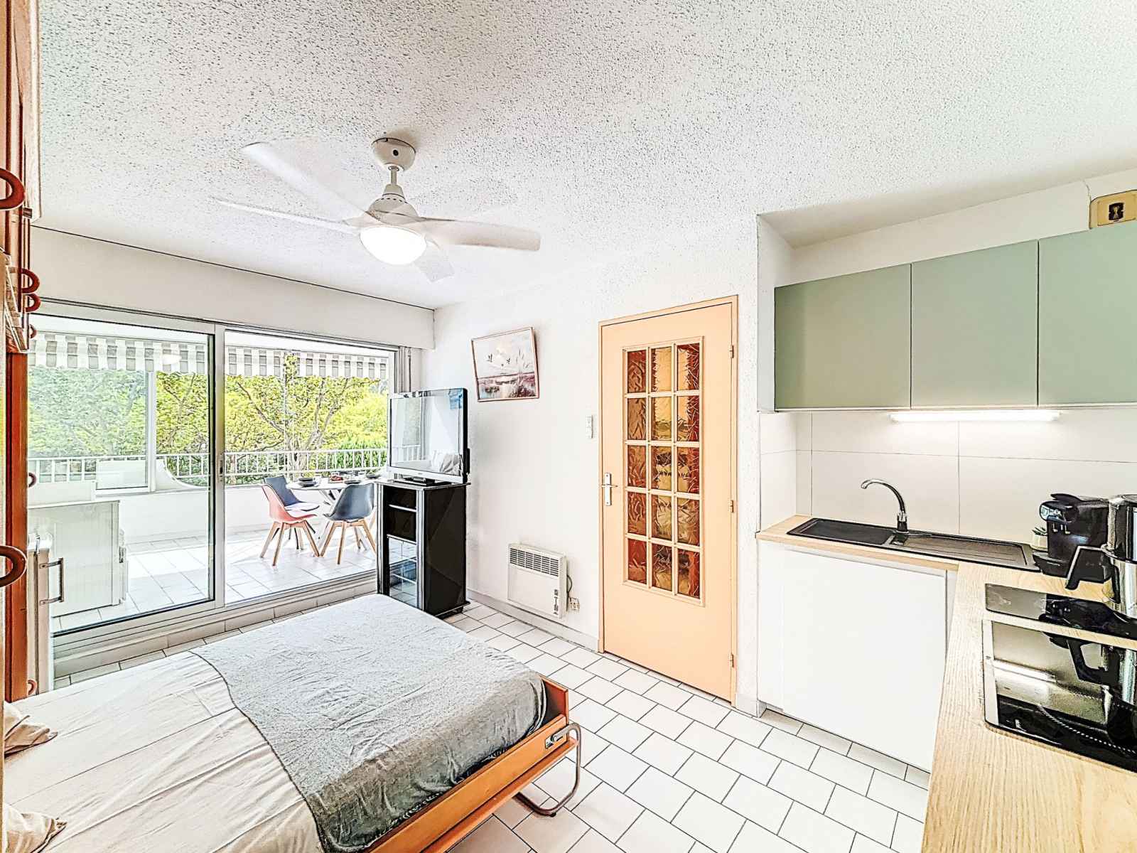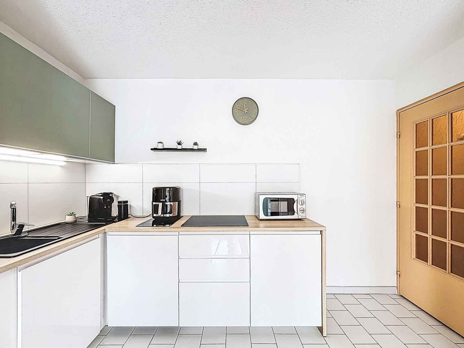 (90 cm, longueur 190 cm). Sortie sur la loggia. Coin cuisine (lave-vaisselle, 3 plaques à induction, grille-pain, bouilloire électrique, micro-ondes, congélateur, cafetière électrique, Capsules pour machine à café (PHILLIPS) (NON INCLUSES)). Salle de bains, baignoire sabot, WC séparé. Loggia. Vue sur le jardin. A disposition: Internet (Connexion WIFI, en sus). Place de parking No 132. Veuillez noter: logement non-fumeur. Détecteur de fumée. Annonce d'un particulier (art 155, IV du CGI). 06 87 665 378 414