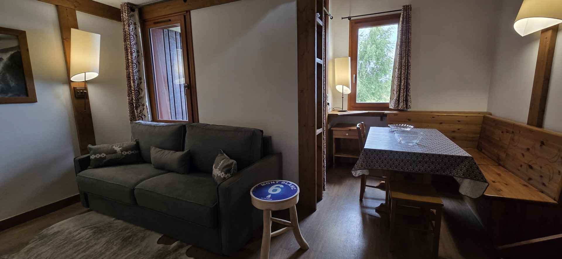 Situé dans la résidence le chalet de montchavin, à 150m des pistes et des commerces de montchavin. ce beau studio en duplex d'une superficie de 36m2 pour 5 personnes, se trouve au 2ème étage avec balcon.