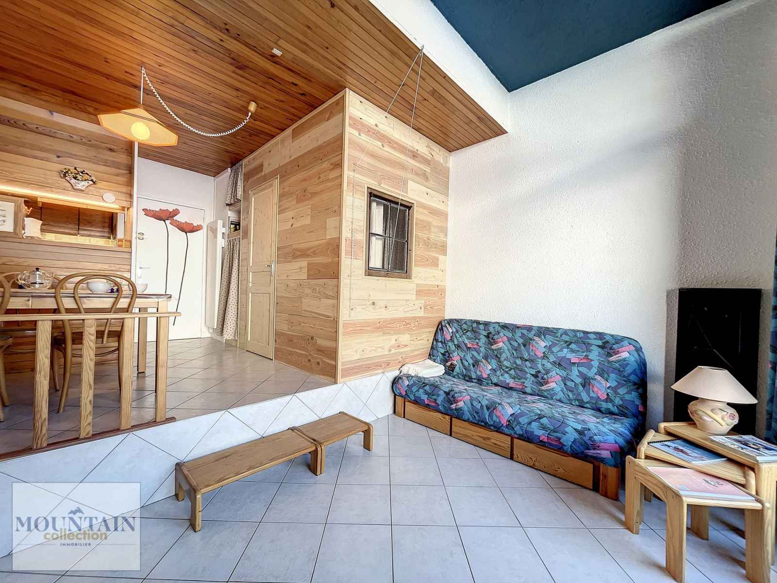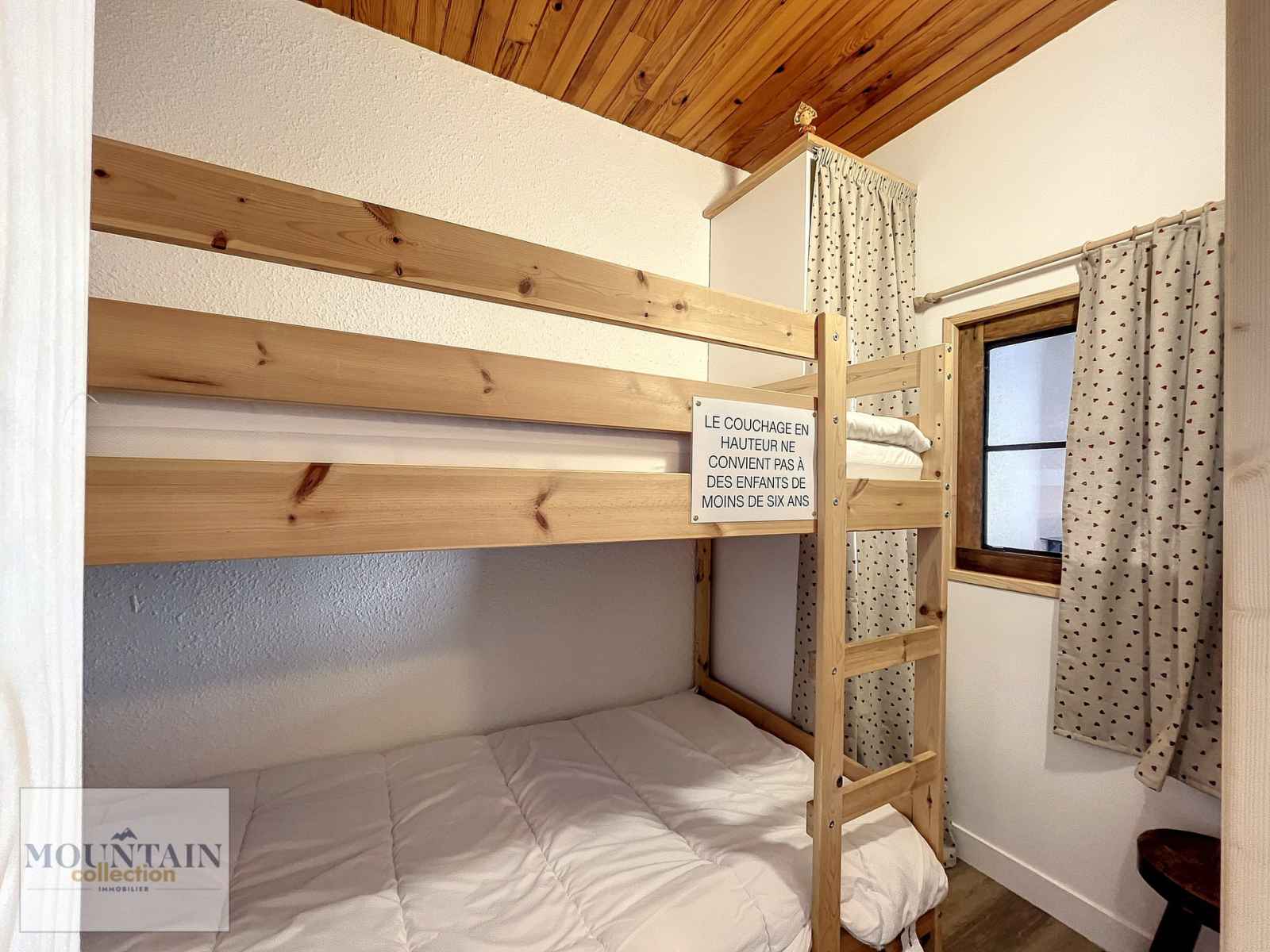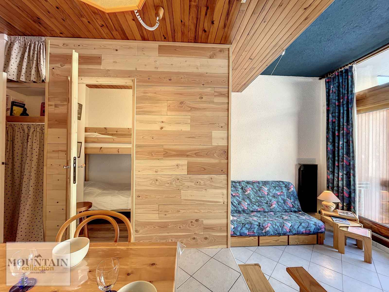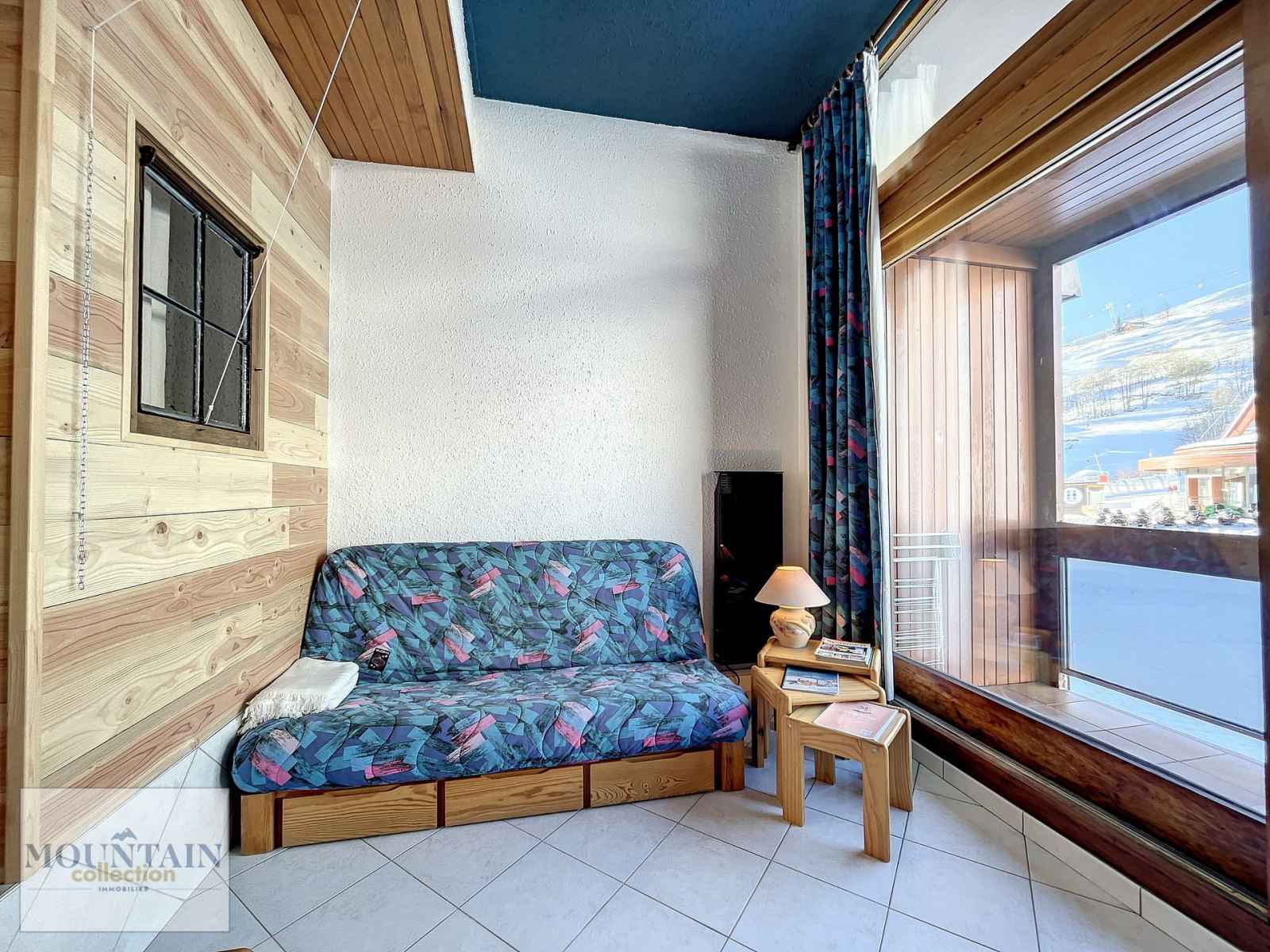 En plein centre de la station sur front de neige, studio cabine de 30 m², pour 4 personnes, situé résidence agena, au 1er étage côté pistes.