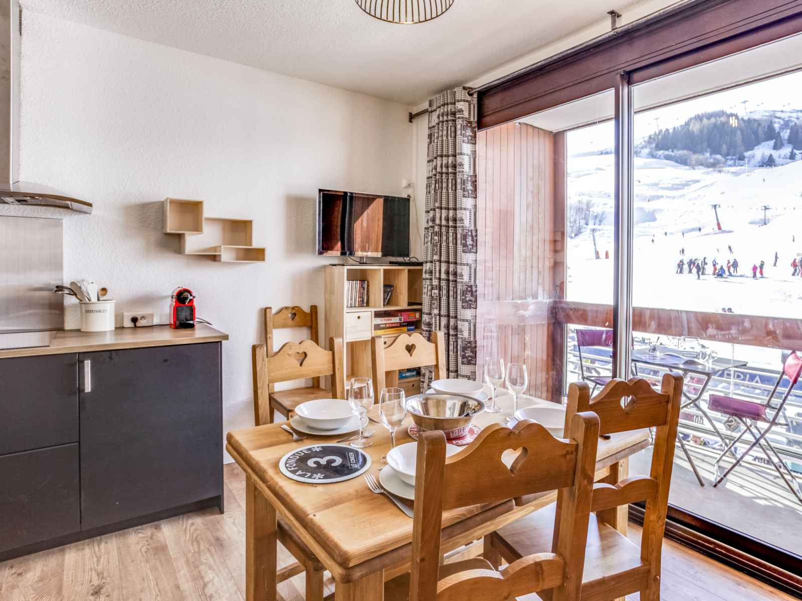 Apt 2 pièces 32 m2 au 1er étage. complètement rénové en 2018, aménagement confortable et agréable: séjour/salle à manger avec porte coulissante avec tv (écran plat), dvd et collection de dvd disponible. sortie sur le balcon, orientée sud. alcôve avec porte coulissante, fenêtre donnant sur le séjour avec 1 grand-lit (140 cm, longueur