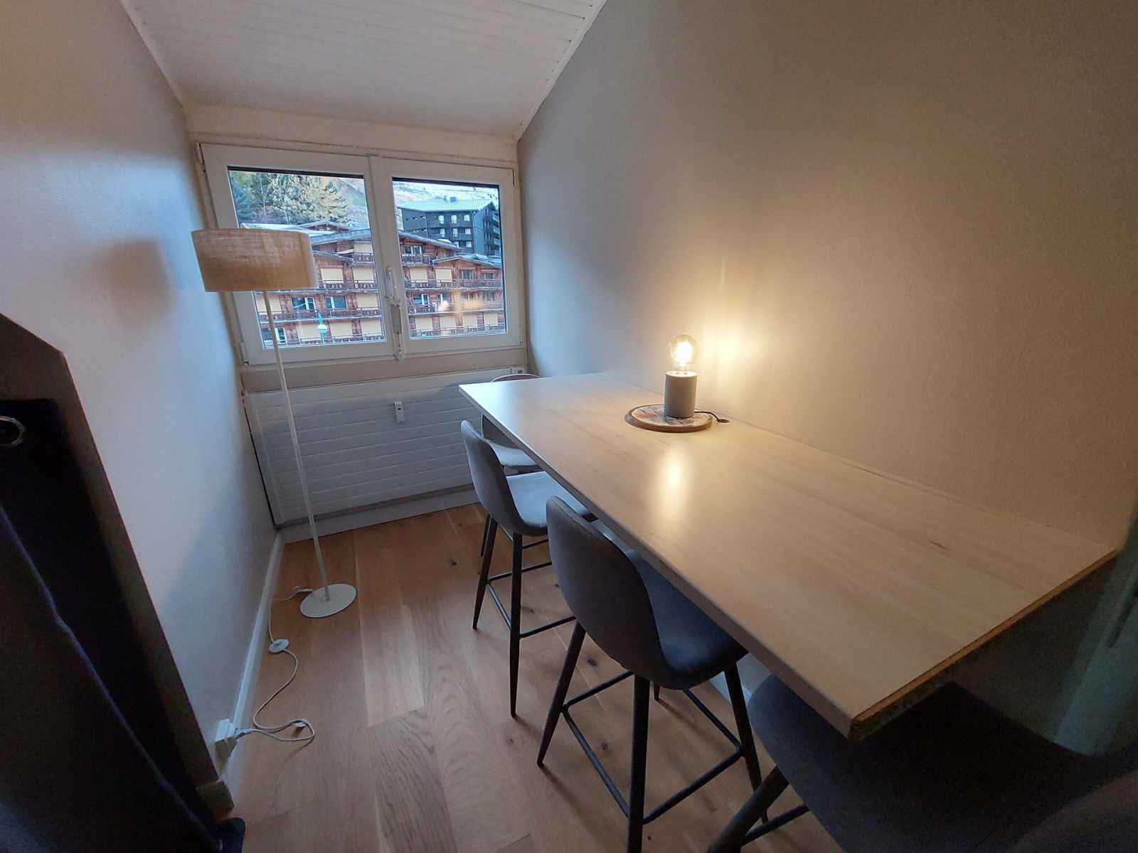 plaque vitrocéramiques, micro-onde combiné four, réfrigérateur, cafetière, bouilloire, grille-pain, Appareil à raclette Couchages : -Mezzanine: 2 Lits double (140 x 200) Mezzanine accessible par un escalier sans garde-corps Sanitaires : Salle d'eau avec douche et WC Divers : Casier à ski Lave-linge Animaux refusés Volet roulant électrique/manuel Accès au parking collectif de l'immeuble, place non garantie Le linge de lit, le linge de maison, les serviettes, le wifi ainsi que le ménage de fin de séjour ne sont pas inclus (à réserver au plus tard le jour de votre arrivée et sous réserve de disponibilité).