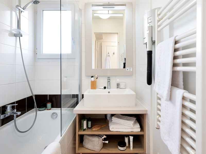 - Equipements (sauf mention contraire ci dessus) : Baignoire, Cafetière, Climatisation, Cuisine équipée, Combiné four et micro-ondes, Lave-vaisselle, Machine Nespresso, Sèche-cheveux