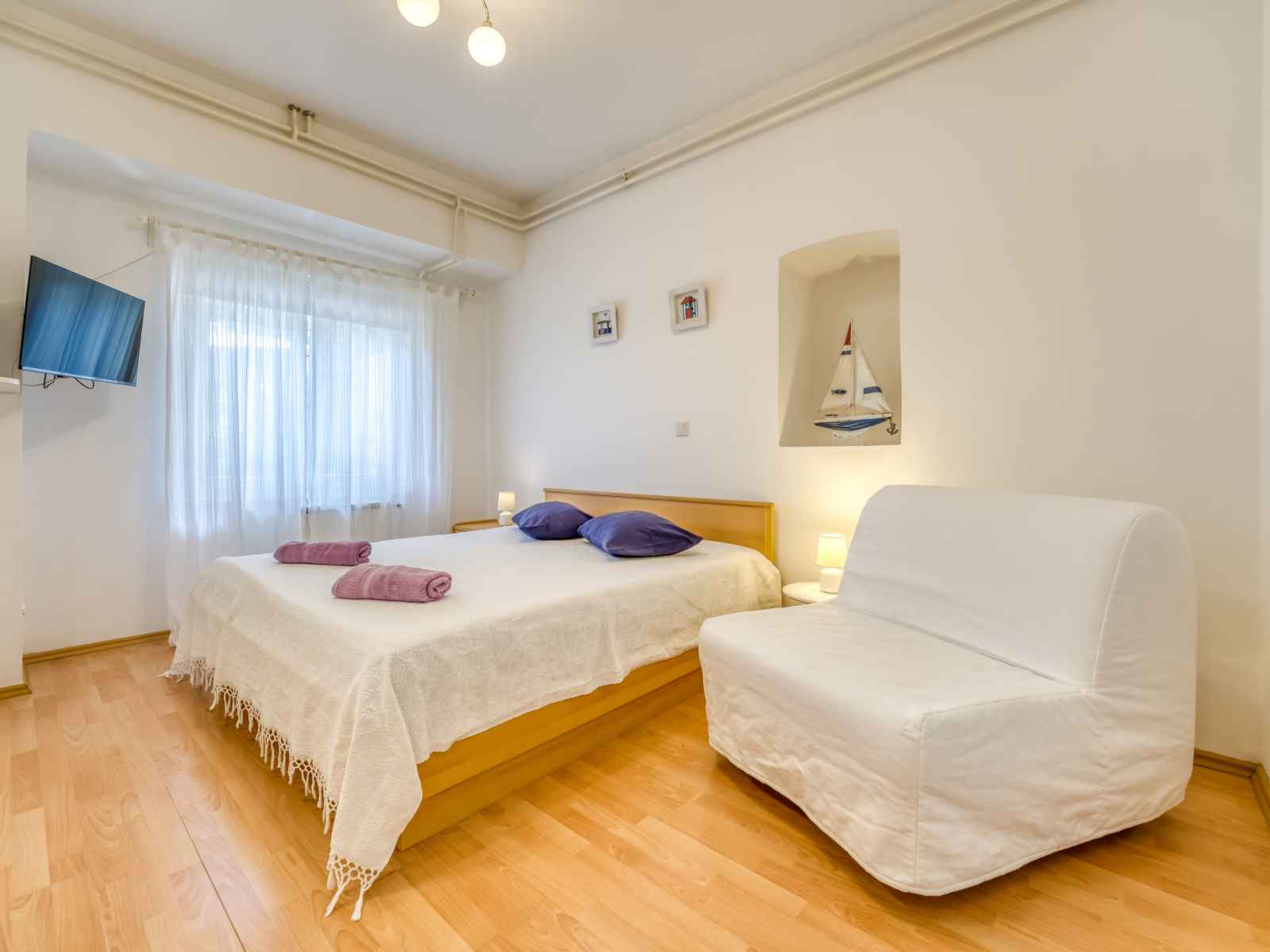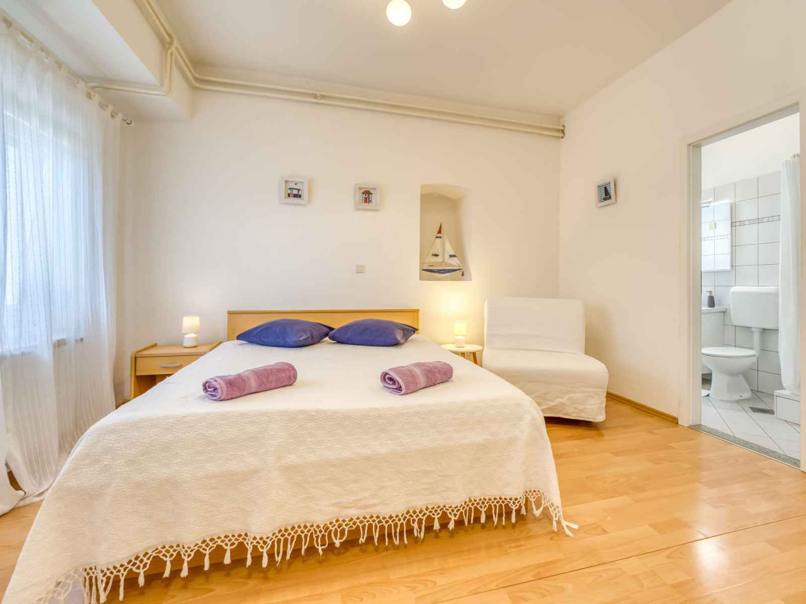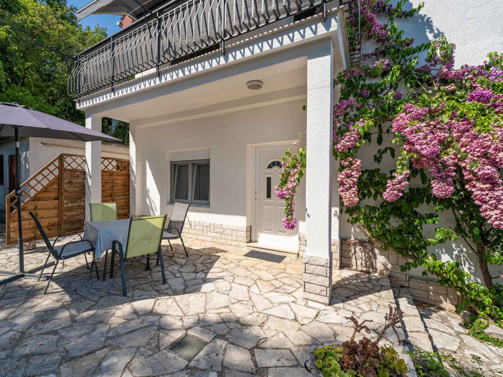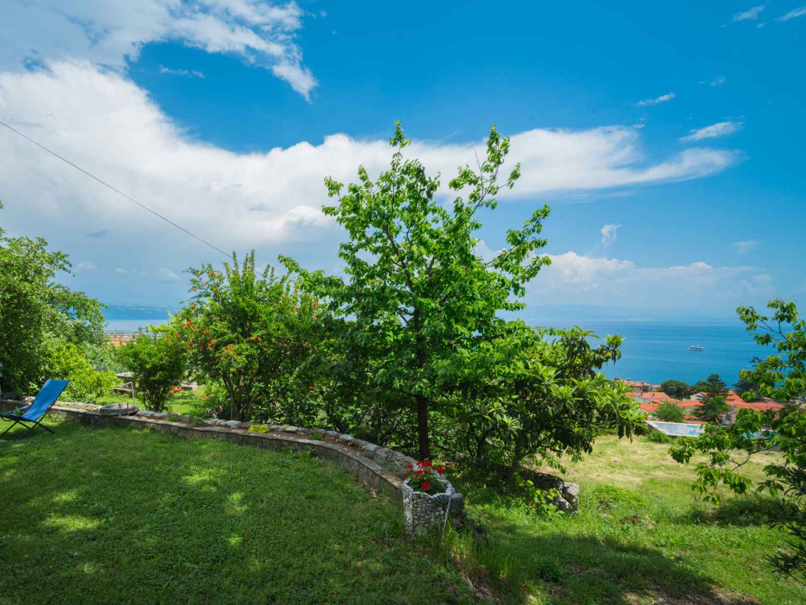 Belle maison à 2 apts accueillante "emil". dans le haut de la station de lovran en-dehors de la localité, situation isolée, ensoleillée, surélevée, à 1 km de la mer, à 1 km de la plage, dans la verdure. en commun: terrain 1'500 m2, jardin avec pelouse et arbres, verger, pré. jardinet. a usage privé: barbecue. infrastructures de la