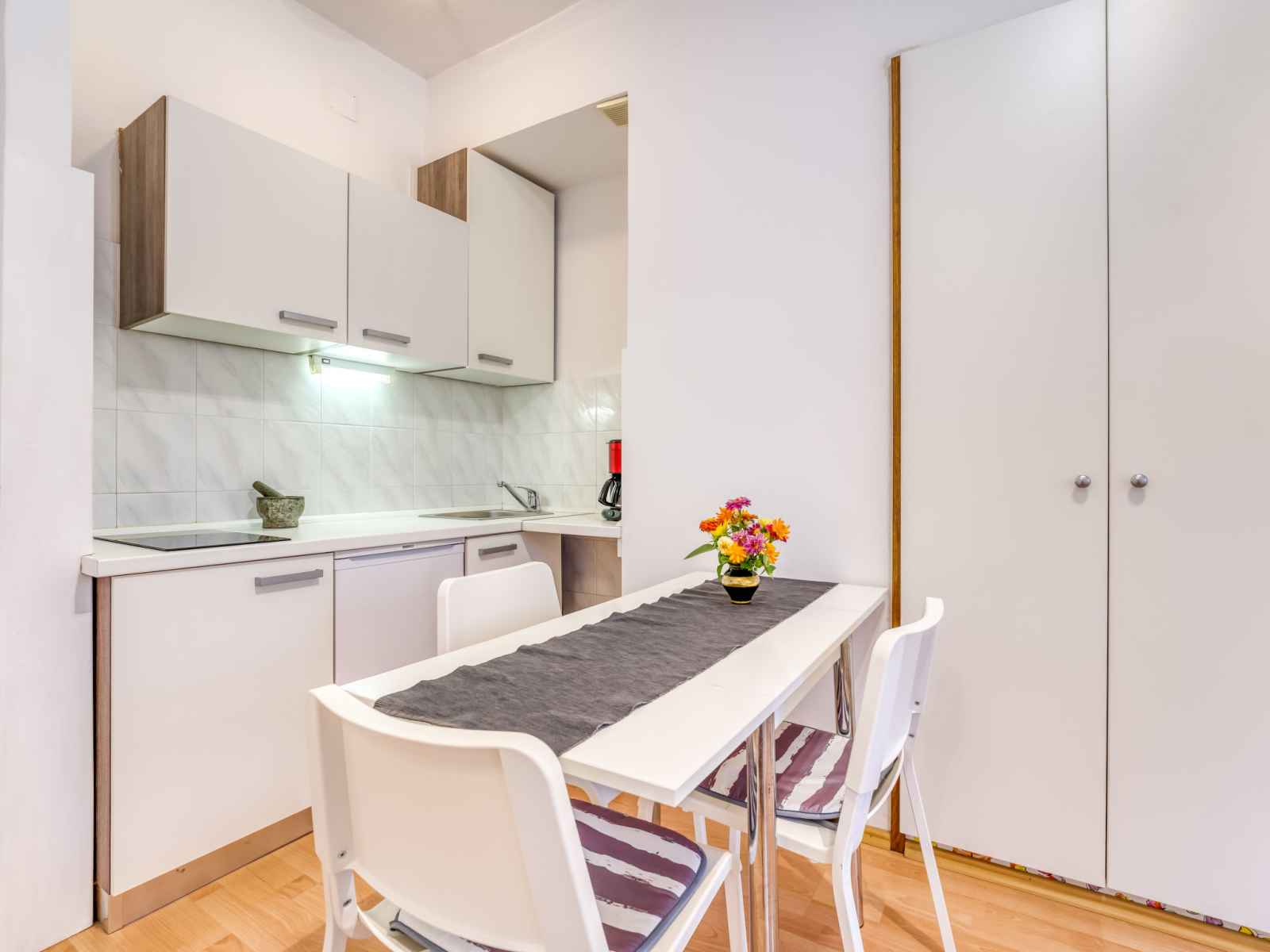 Studio 23 m2, au rez-de-chaussée. studio avec 1 grand-lit (160 cm, longueur 200 cm), 1 lit pliant et tv (satellite) (écran plat), air-conditionné. cuisine ouverte (2 plaques de cuisson) avec table pour les repas. douche/wc. grande terrasse. meubles de terrasse, barbecue. superbe vue panoramique sur la mer et les alentours. a disposition: