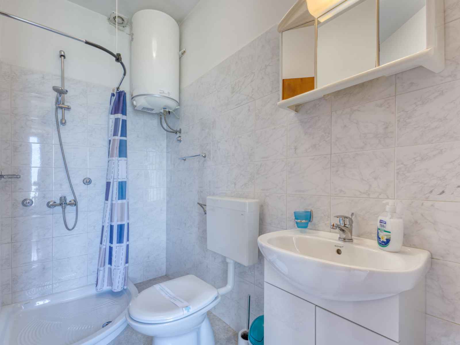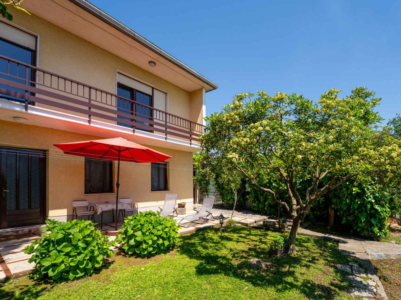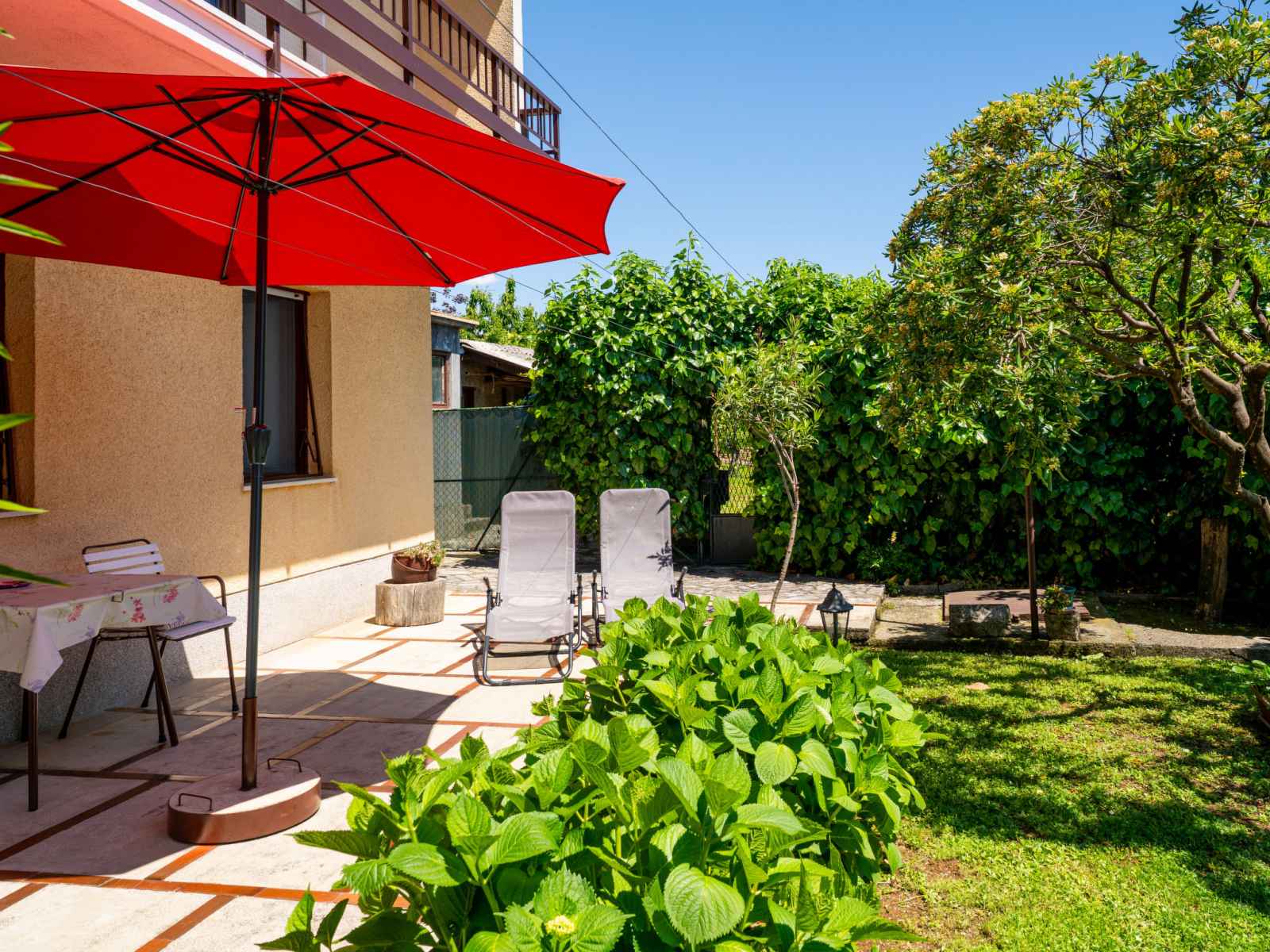 Immeuble "marija". 900 m du centre, situation tranquille, ensoleillée sur un versant, à 650 m de la mer, à 650 m de la plage, dans la verdure. en commun: jardin pelouse 60 m2, plantes. barbecue. infrastructures de la maison: accès internet, chauffage central. accès en voiture par un chemin étroite. place de parking près de la maison sur le