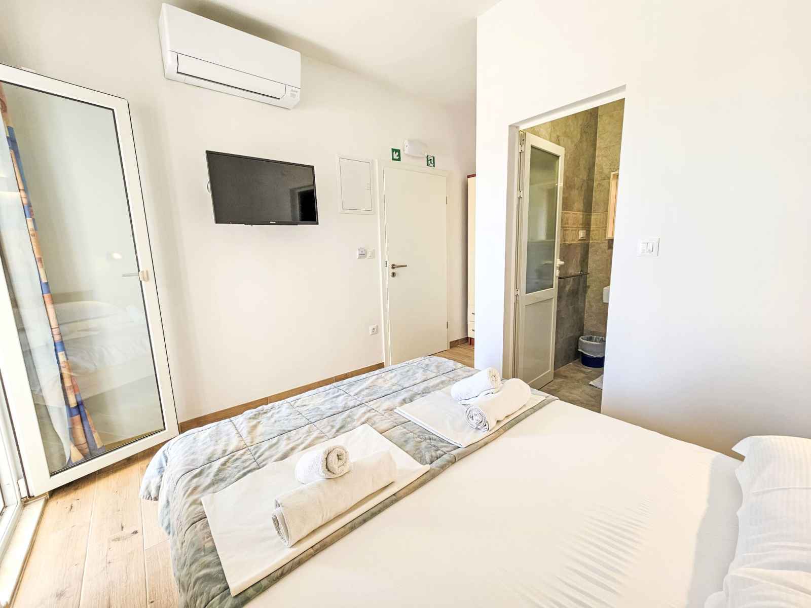 Studio 19 m2 au 1er étage. complètement rénové en 2024: studio avec 1 lit double (160 cm, longueur 200 cm), douche/wc, tv (satellite) et air-conditionné. sortie sur le balcon. petite cuisine (2 plaques vitrocéramiques, grille-pain, bouilloire électrique, cafetière électrique). sortie sur le balcon. balcon 4 m2. mobilier de balcon. vue