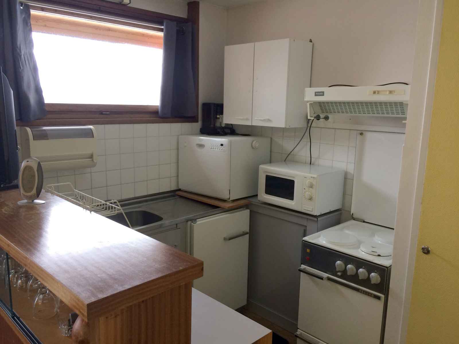 ondes, réfrigérateur,lave vaisselle séparée du coin repas par un bar américain. Salle de bain avec douche, wc et lave linge . Casier à ski indépendant au rez-de-chaussée. Possibilité d'avoir un accès wifi dans l'appartement (payant) Services à la demande à régler sur place : location linge de lit ou de toilettes, parking souterrain, taxe animale, ménage de fin de séjour, lit bébé, chaise haute, box wifi…Pensez à les réserver avant votre séjour!!