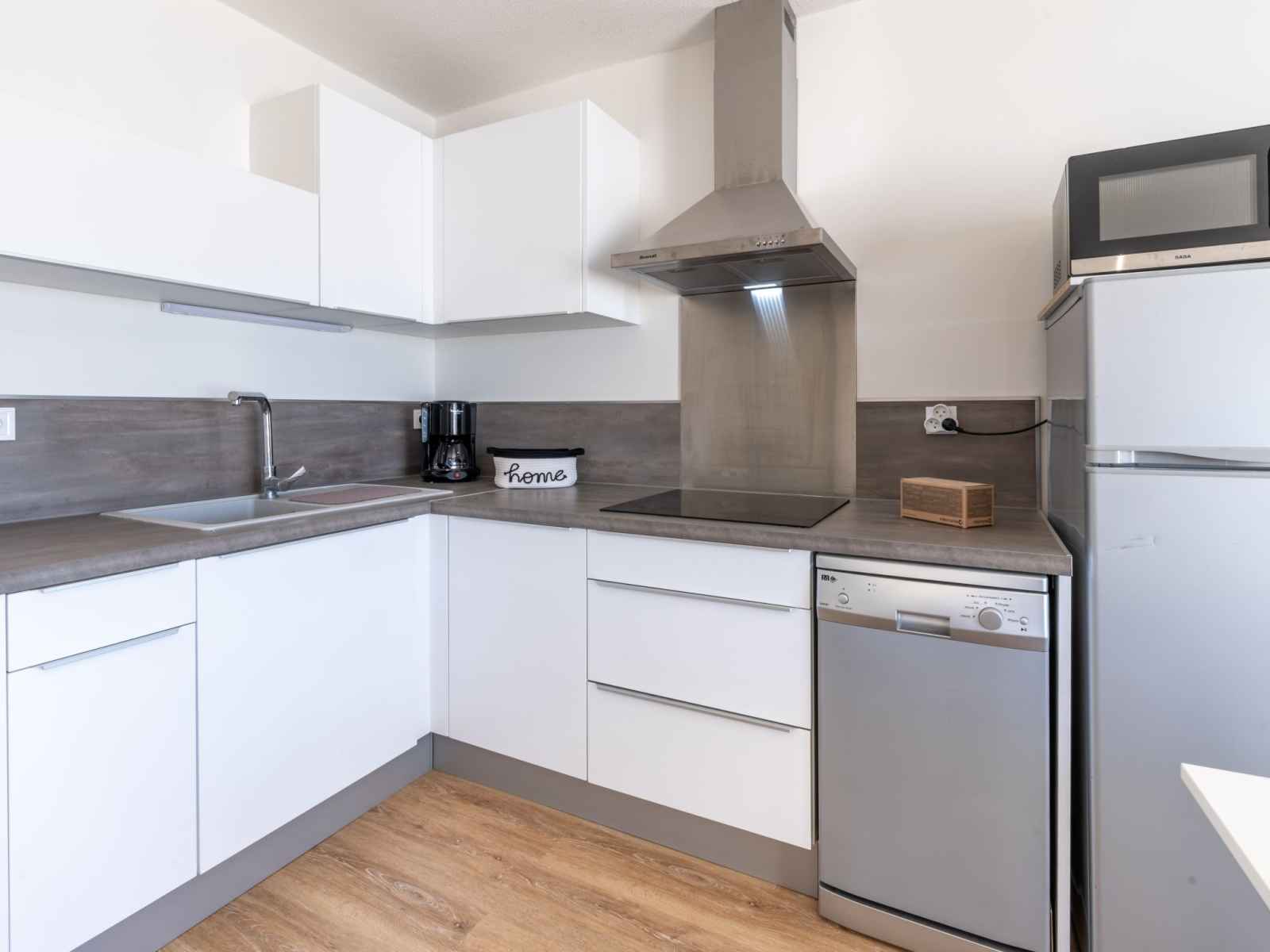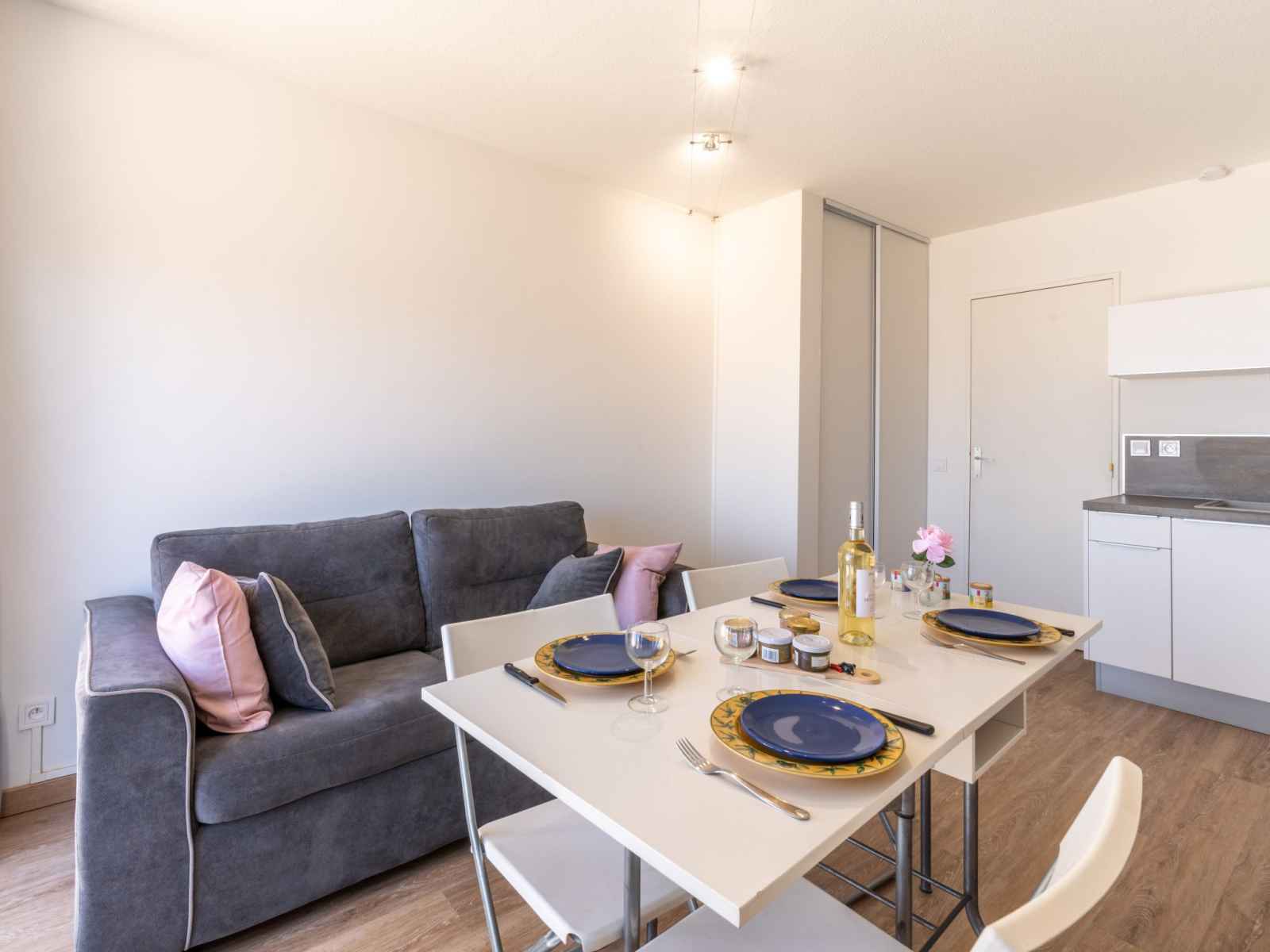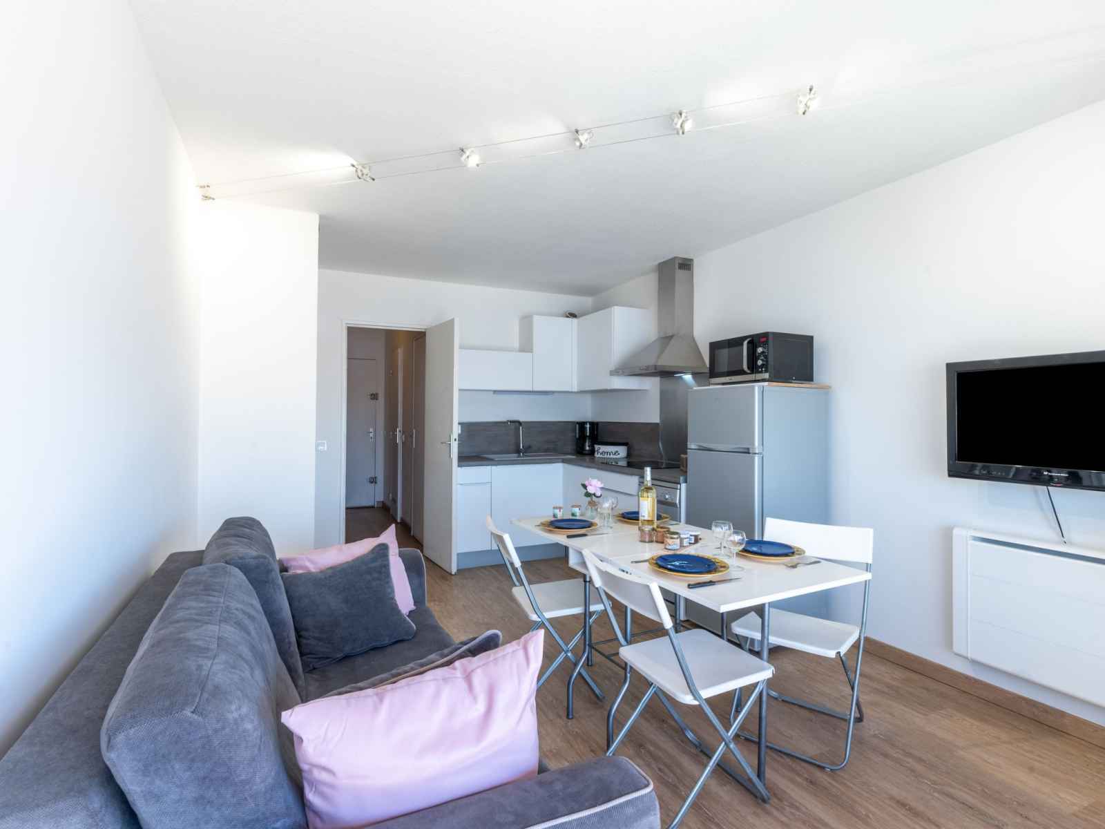 "résidence la santa maria" studio 24 m2 au 2ème étage. logement idéal pour 2 adultes + 2 enfants. séjour/salle à manger avec 1 divan-lit (140 cm, longueur 190 cm), tv (écran plat). sortie sur la terrasse. cabine avec 1 x 2 lits superposés (90 cm, longueur 190 cm). cuisine ouverte (lave-vaisselle, 4 plaques à induction, grille-pain,