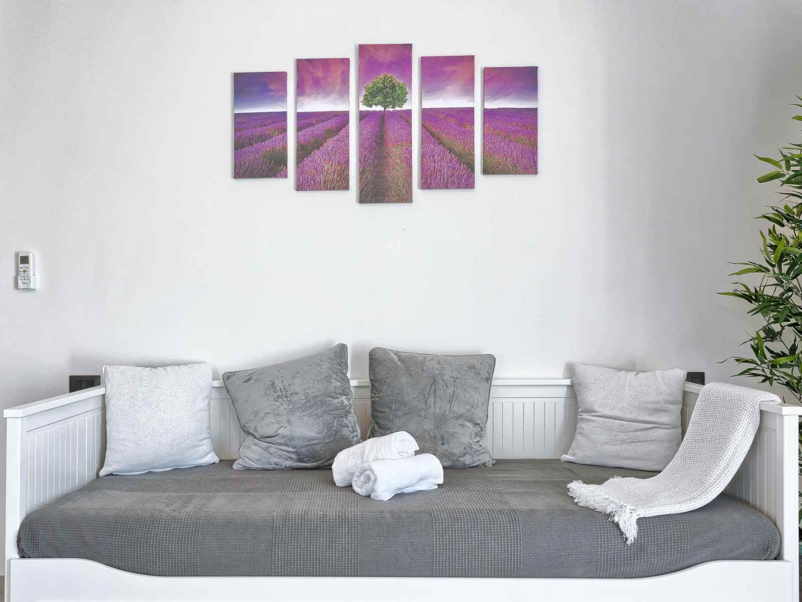Studio 35 m2 au 1er étage. studio avec 1 lit gigogne (2 pers. 2 x 80 cm, longueur 200 cm), tv (satellite) (écran plat), air-conditionné. sortie sur la terrasse. cuisine ouverte (2 plaques vitrocéramiques, micro-ondes, cafetière électrique) avec table pour les repas. douche/wc. chauffage à air chaud. terrasse 8 m2 partiellement couverte.