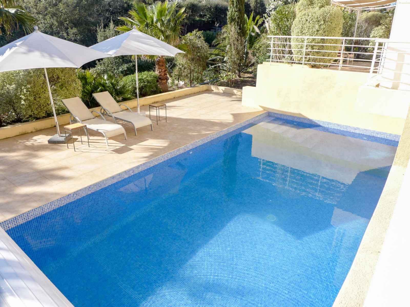 Maison à 2 apts "le corelly". dans la localité, à 2 km du centre de saint aygulf, situation tranquille dans un quartier résidentiel, à 2 km de la mer, à 2 km de la plage. a usage privé: jardin naturel 400 m2 (clôturé), piscine rectangulaire (8 x 4 m, profondeur 160 - 160 cm, disponibilité saisonnière: 01.mai. - 31.oct.) avec marches