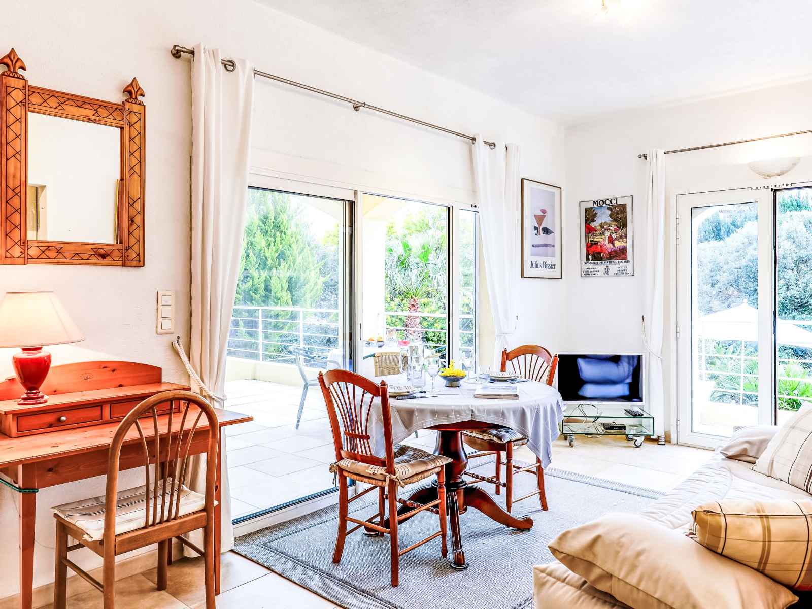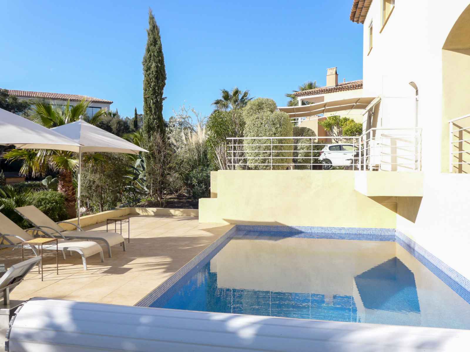 intérieures et protection par couverture de volet. magasins 1.7 km, centre commercial 7 km, centre à 30 minutes à pieds, arrêt de bus "grand parc" 1.7 km, gare ferroviaire "fréjus" 8 km, plage de sable "saint aygulf" 2 km, parc "areca" 2 km, centre de plongée 7 km, centre thermal "thalasso de port fréjus" 7 km. port plaisance 2 km, terrain de golf (18 trous) 10 km, ecole de voile 8 km, centre équestre 1 km, centre sportif 2 km. attractions à proximité: lunapark, aqualand 6 km, fréjus 8 km, saint raphaël 10 km, saint tropez 30 km, cannes 45 km, nice 71 km. les domaines skiables de renommée sont facilement accessibles: auron, isola 2000 150 km. les lacs connus sont facilement accessibles: lac de st cassien 45 km, lac du du verdon 90 km. région de randonnées: estérel 18 km, sentier du littoral 2.5 km. veuillez noter: la remise des clés a lieu à l’agence interhome de saint aygulf, 2 km. le propriétaire habite dans la même maison.