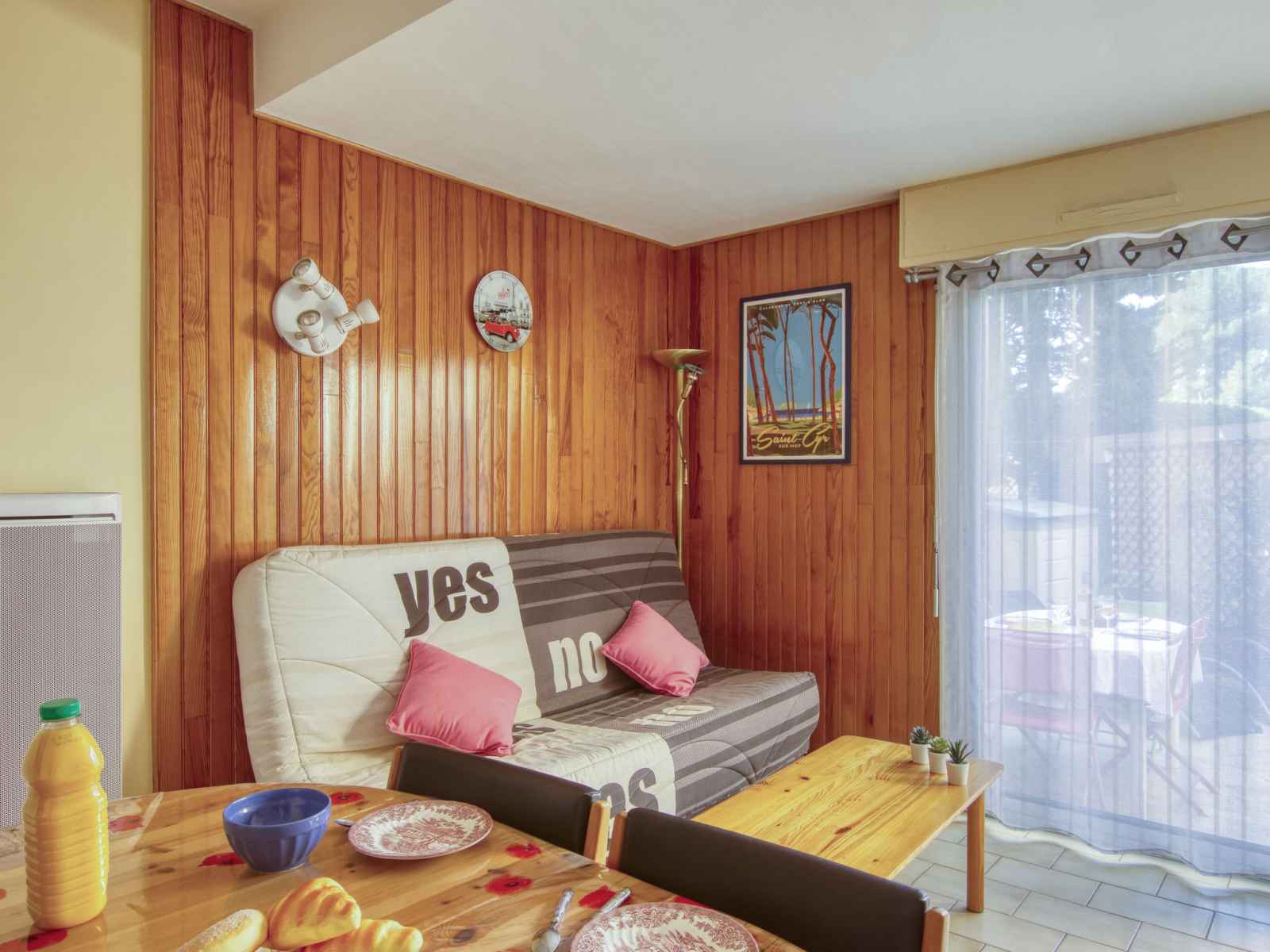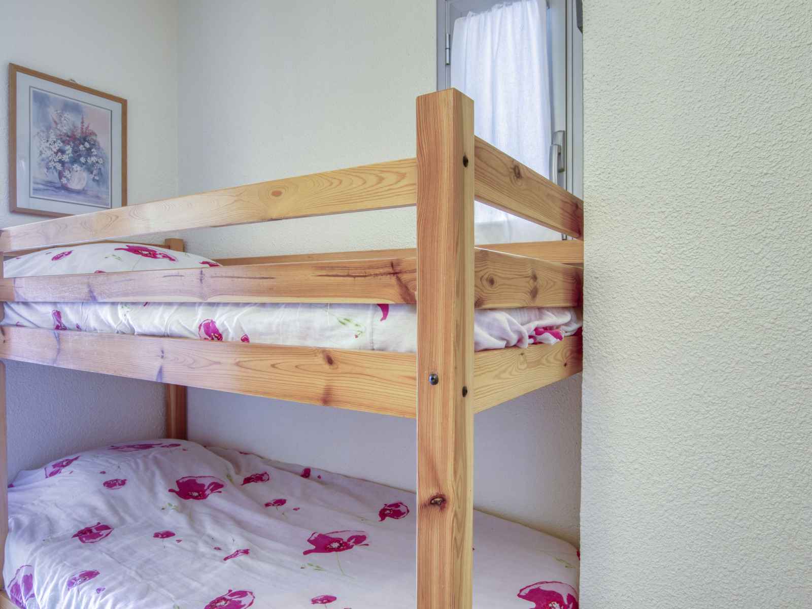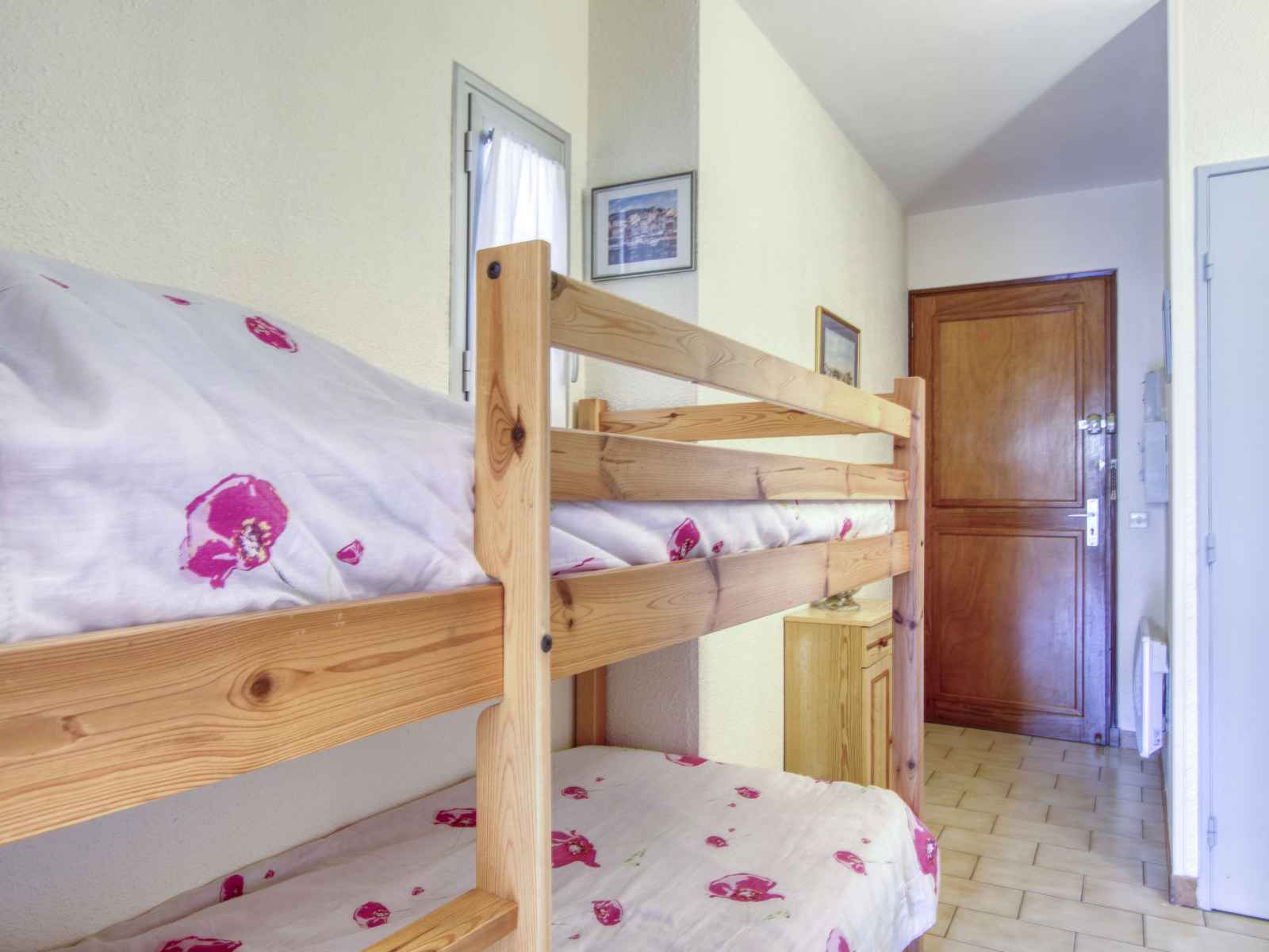 Studio 28 m2, au rez-de-chaussée. aménagement agréable: entrée avec 1 x 2 lits superposés (80 cm, longueur 190 cm). séjour/salle à manger avec 1 divan-lit double (140 cm, longueur 190 cm), tv (écran plat). sortie sur la terrasse. coin cuisine (lave-vaisselle, 2 plaques vitrocéramiques, grille-pain, micro-ondes, congélateur, cafetière