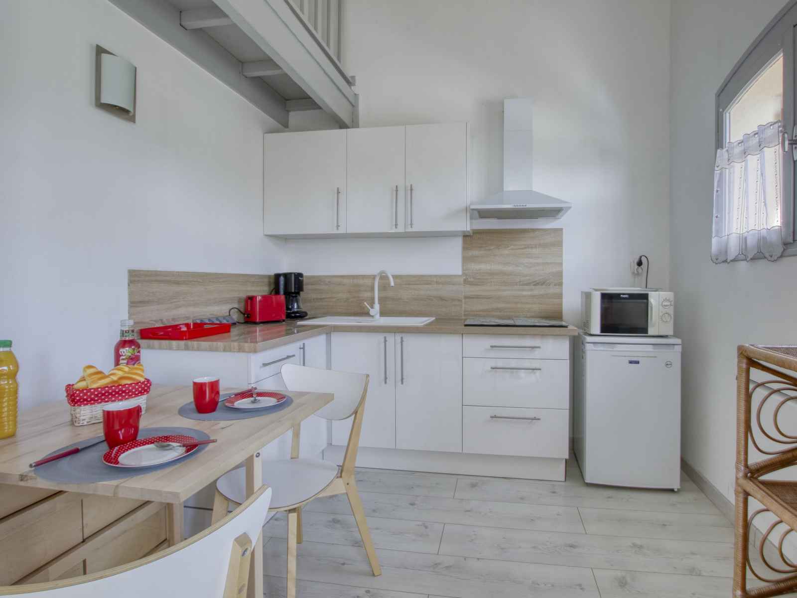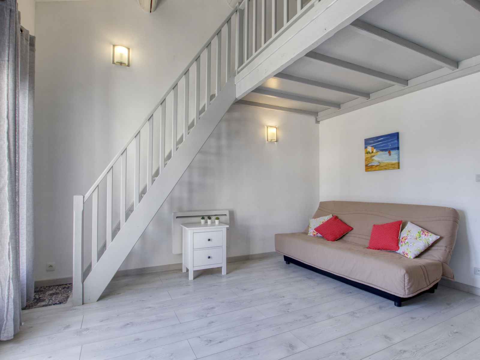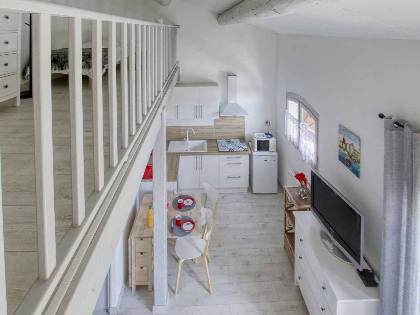 Studio 38 m2 sur 2 niveaux au 1er étage. rénové en 2021, aménagement confortable et agréable: séjour/salle à manger avec 1 divan-lit double (130 cm, longueur 190 cm), tv (écran plat). sortie sur la terrasse. coin cuisine (4 plaques à induction, grille-pain, bouilloire électrique, micro-ondes, cafetière électrique). douche, wc séparé.