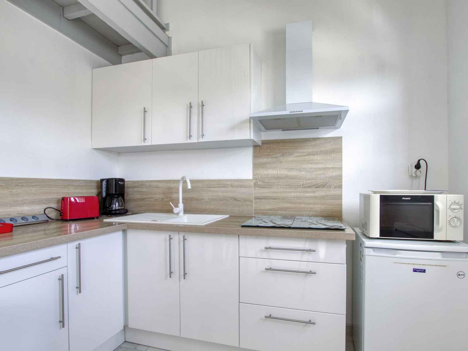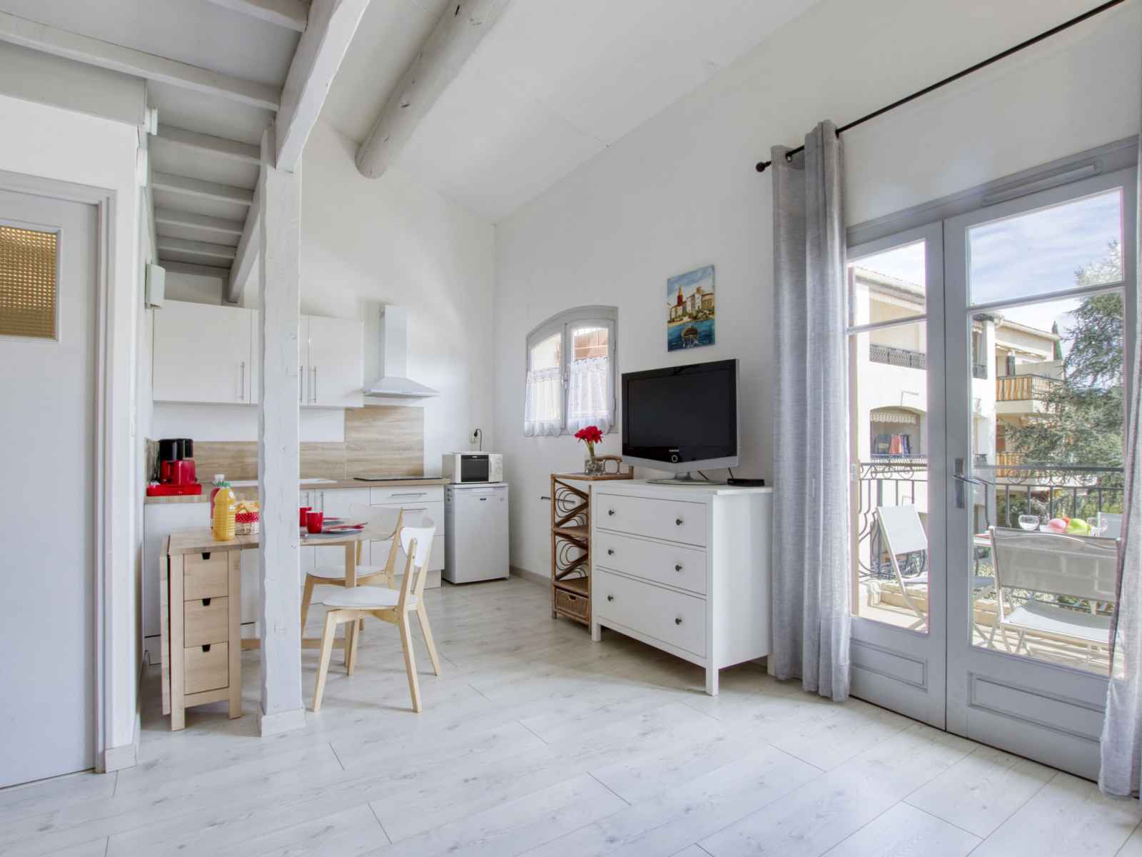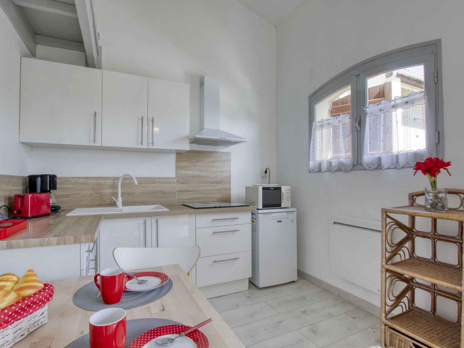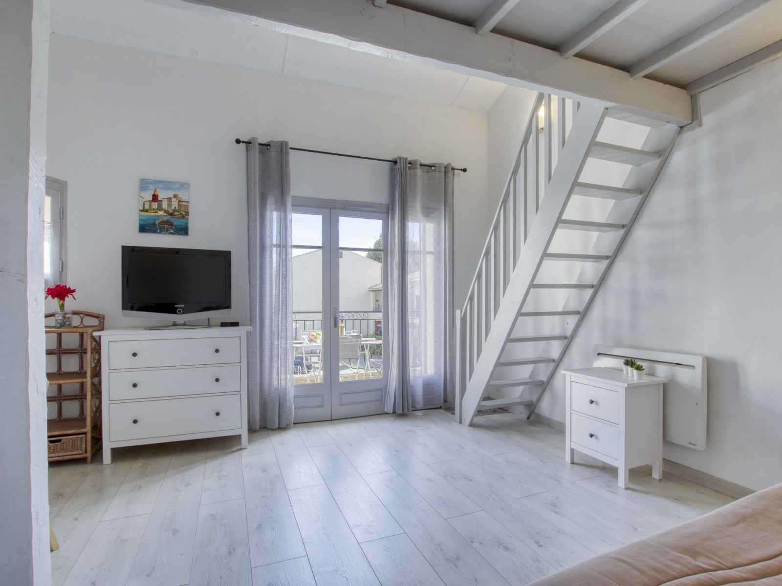 Studio 38 m2 sur 2 niveaux au 1er étage. rénové en 2021, aménagement confortable et agréable: séjour/salle à manger avec 1 divan-lit double (130 cm, longueur 190 cm), tv (écran plat). sortie sur la terrasse. coin cuisine (4 plaques à induction, grille-pain, bouilloire électrique, micro-ondes, cafetière électrique). douche, wc séparé.