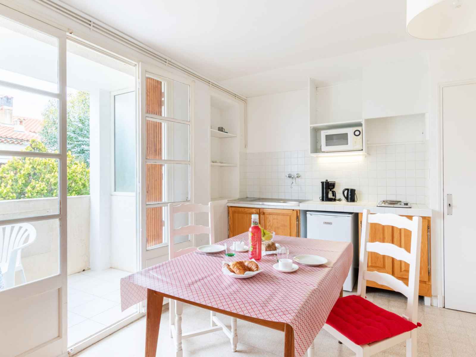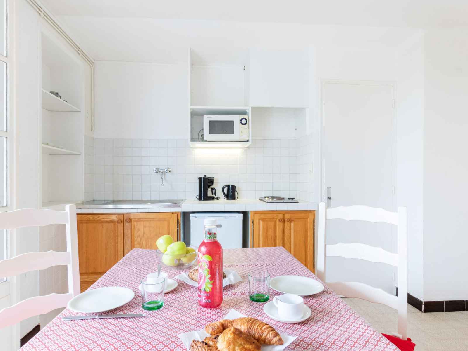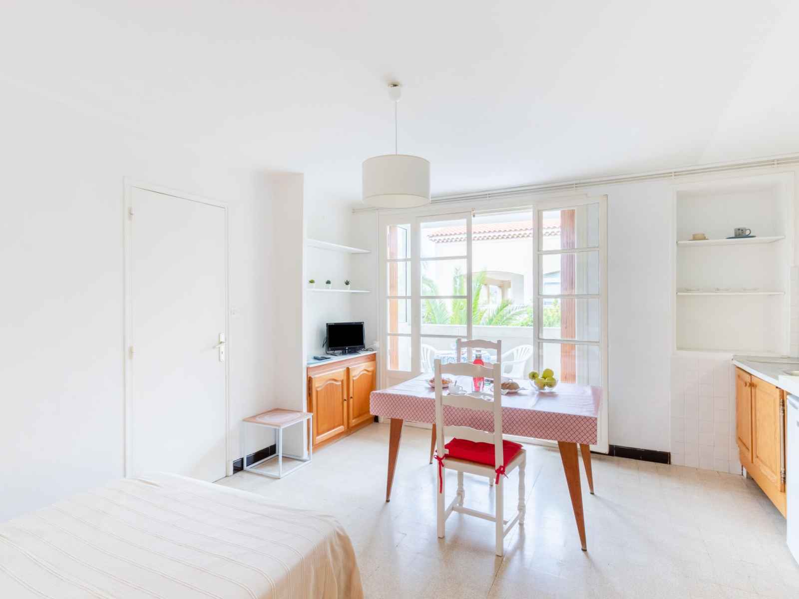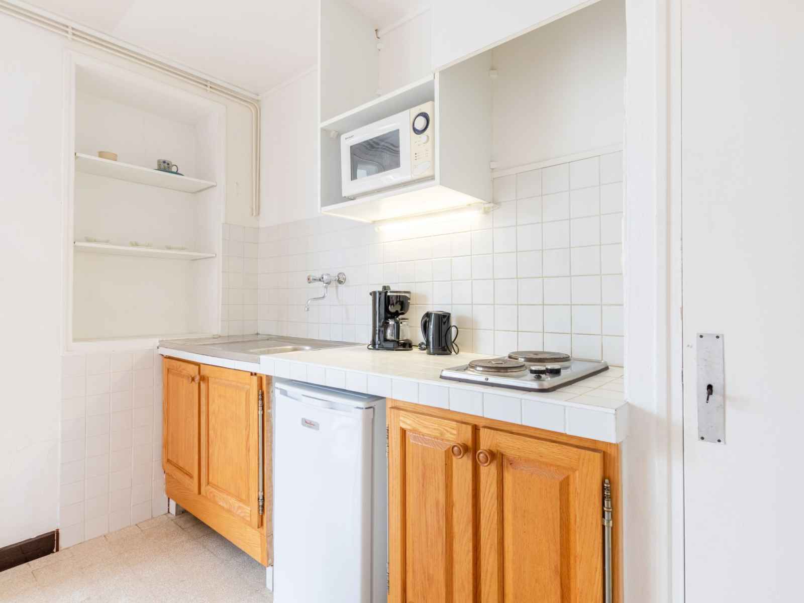 Studio 26 m2 au 1er étage. aménagement simple et fonctionnel: séjour/salle à manger avec 1 lit double (140 cm, longueur 190 cm), tv. sortie sur la terrasse. coin cuisine (2 plaques de cuisson, bouilloire électrique, micro-ondes, cafetière électrique). douche, wc séparé. pas de chauffage. terrasse 6 m2, situation nord-ouest. meubles de