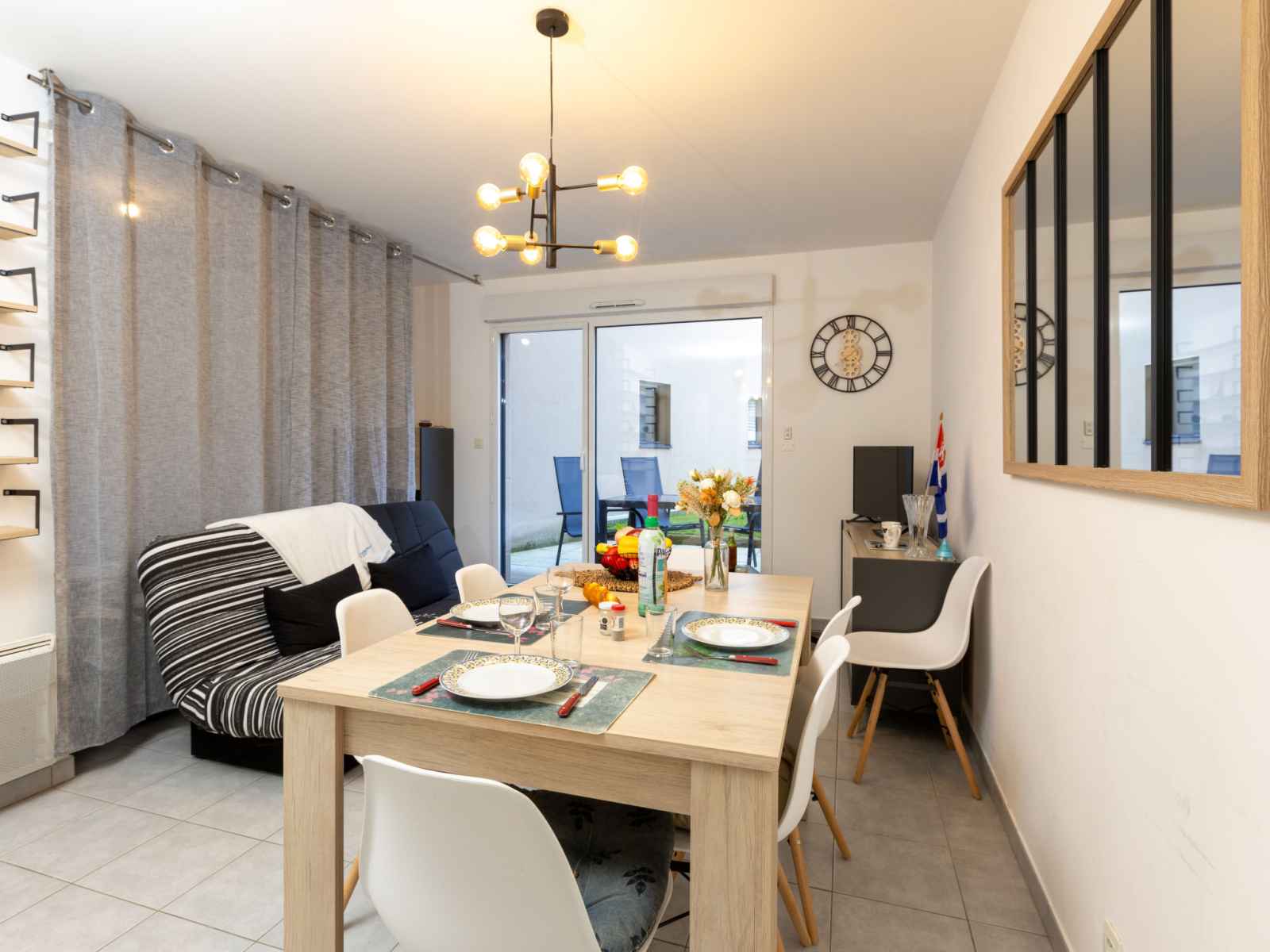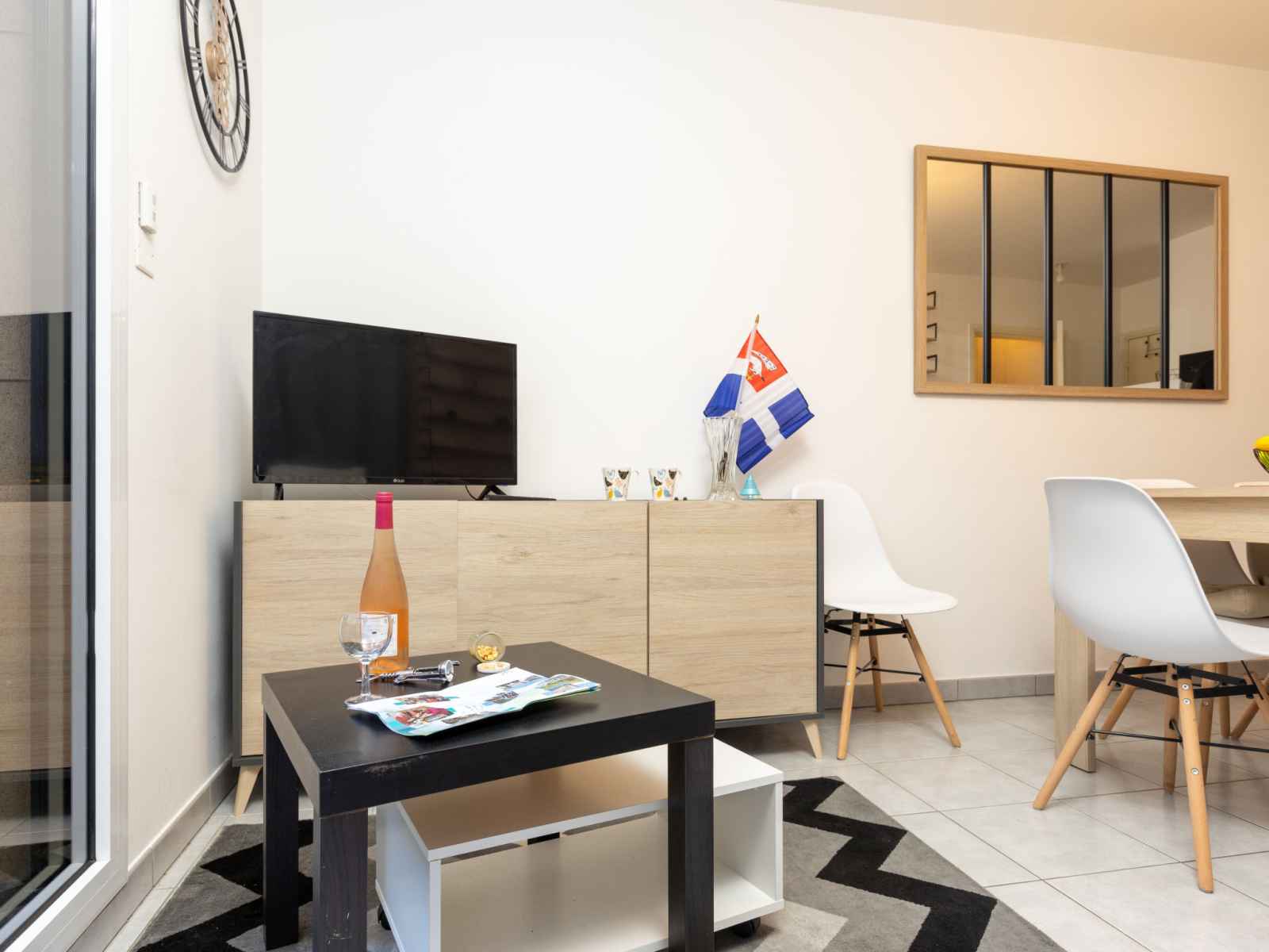 "nautica 2" studio 32 m2, au rez-de-chaussée. logement idéal pour 2 adultes + 1 enfant. aménagement confortable et agréable: grand séjour/chambre à coucher avec 1 divan-lit et 1 grand-lit (1 x 140 cm, longueur 190 cm), table pour les repas et tv (écran plat). sortie sur la terrasse, sur le jardinet. cuisine ouverte (four, lave-vaisselle, 2