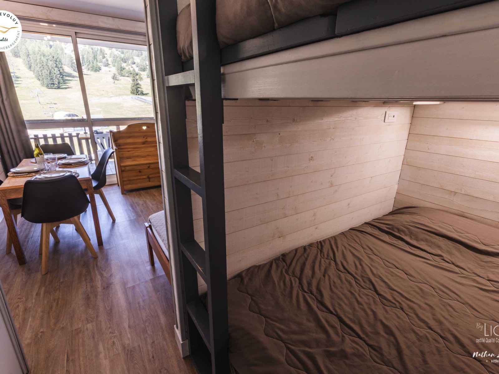 banquettes lit 1 personnes. Séparé du coin montagne (2 lits doubles superposés) par une cloison bois, TV comprise. Salle d'eau avec douche, lavabo et WC. Vue sur le Pic de Bure. Commerces et Restaurants au rez de chaussée. Taxe de séjour à régler sur place. Taxe animaux. Possibilité de location de linge. Le ménage de fin de séjour (au cas où le logement ne serait pas laissé en parfait état de propreté au départ). Le forfait ménage allant de 50€ à 100€.