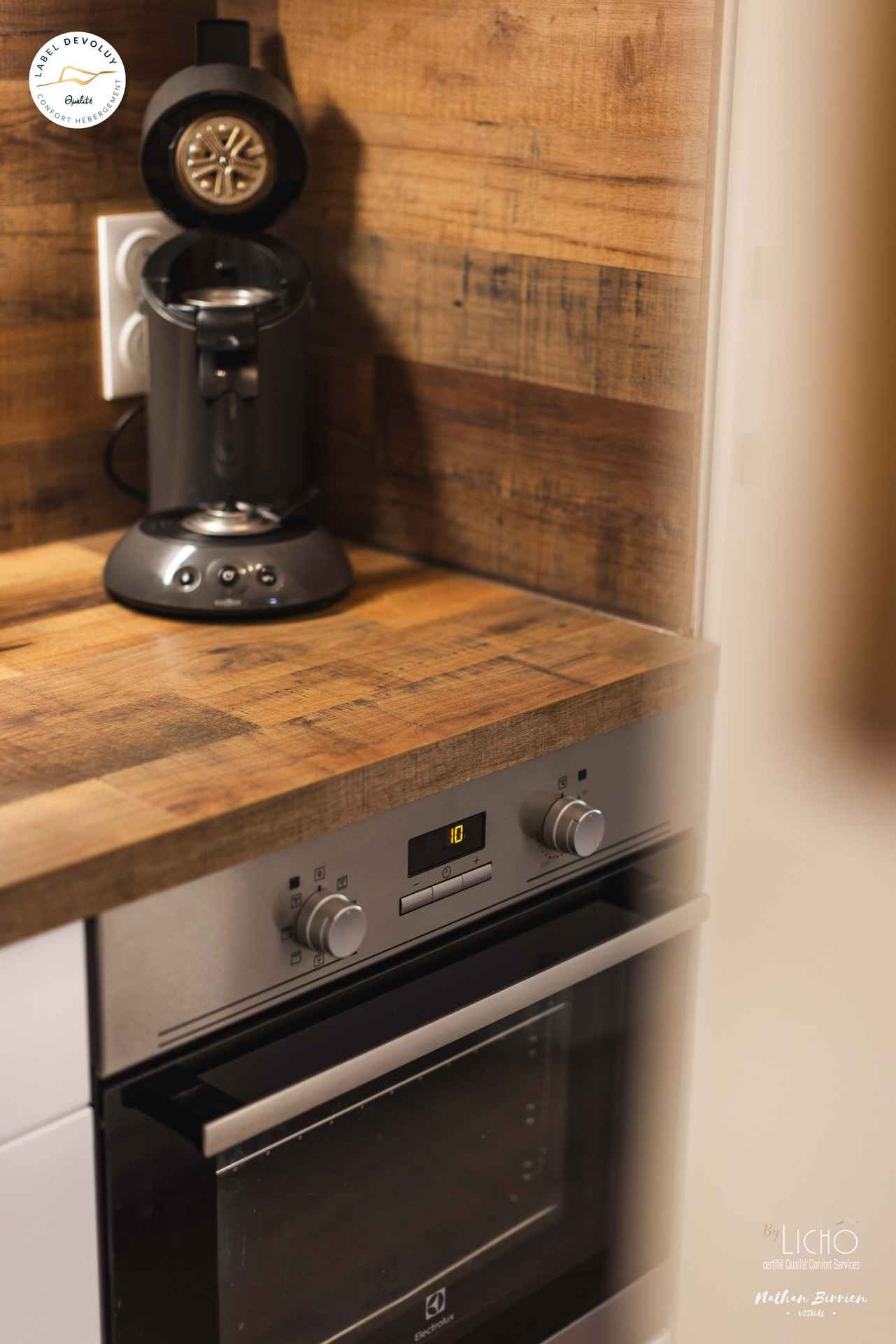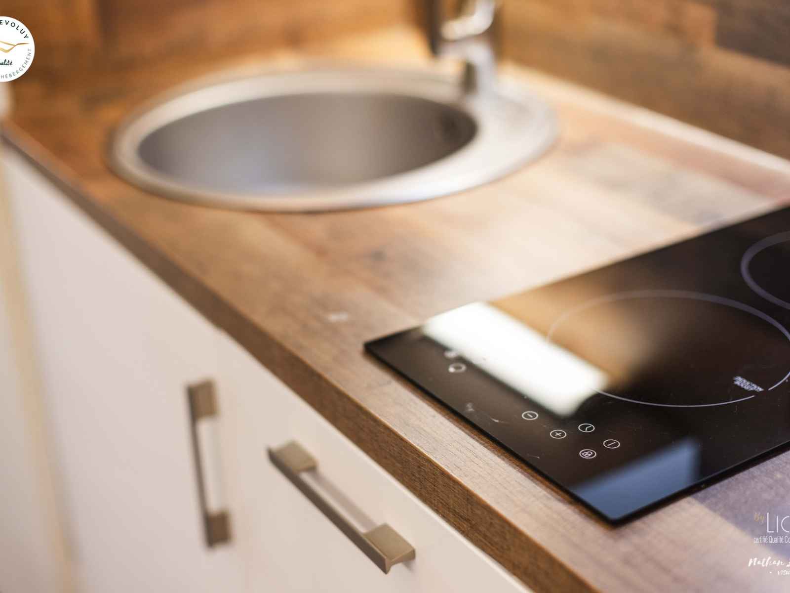 kitchenette entièrement équipée, four, grille-pain, bouilloire électrique, cafetière senseo-phillips, réfrigérateur, congélateur et lave-vaisselle.