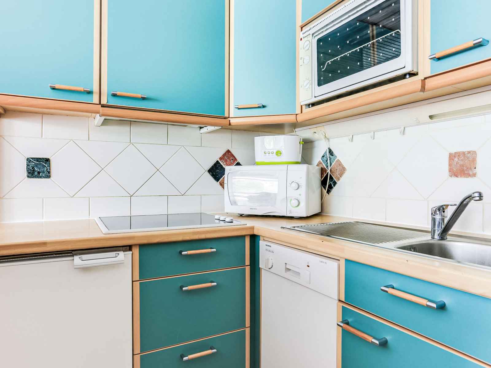 Studio 28 m2 au 3ème étage. aménagement confortable: séjour/salle à manger avec 1 lit (80 cm, longueur 190 cm), 1 grand-lit rabattable (160 cm, longueur 190 cm), tv. entrée avec 1 lit (80 cm, longueur 190 cm). cuisine ouverte (mini-four, four, lave-vaisselle, 3 plaques vitrocéramiques, micro-ondes). bain/wc. balcon, situation sud. vue
