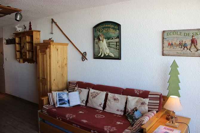 séjour : télévision, banquette gigogne (convertible en deux lits simples côte à côte).